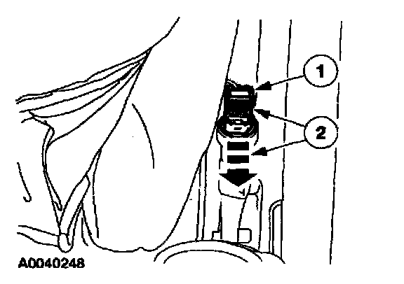 2 Slide and engage the front passenger safety belt buckle pretensioner electrical connector locking clip.