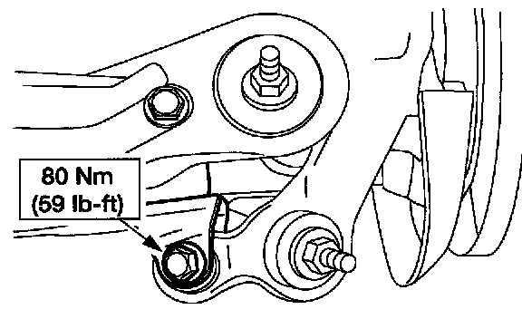 CAUTION: Suspension fasteners are critical parts because they affect performance of vital components and systems and their failure can result in major service expense. A new part with the same part number, or an equivalent part, must be installed if installation is necessary. Do not use a new part of lesser quality or substitute design. Torque values must be used as specified to make sure of correct retention of these parts.