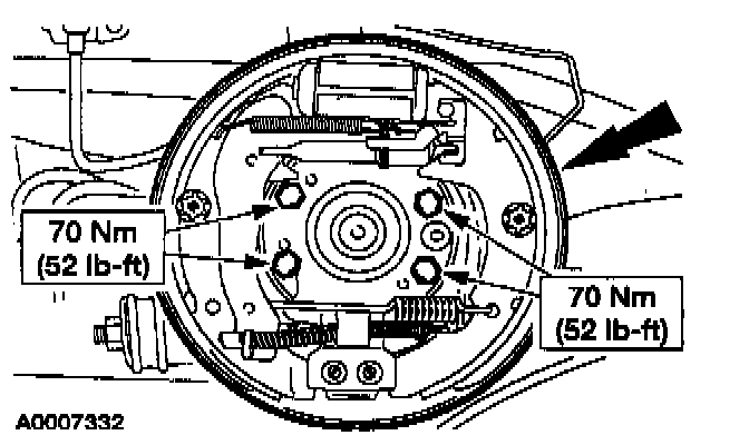 6. CAUTION: Do not allow the brake backing plate to hang from the brake hose. Damage to the hose can occur.