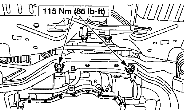 9. NOTE: Support the steering gear before lowering the subframe.