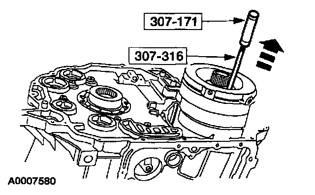 55. Using the special tools, remove the reverse clutch and planet assembly.