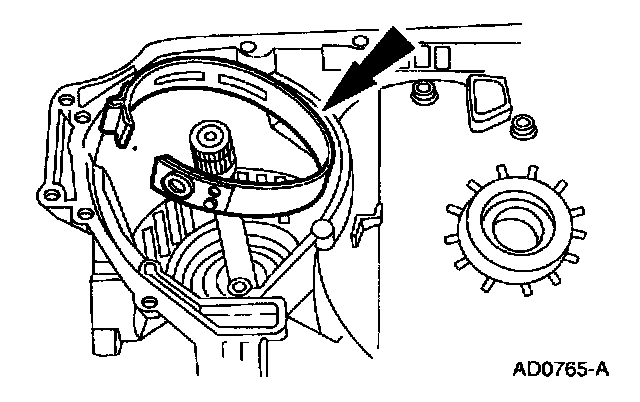 NOTE: The position of the manual valve detent lever is different than past models. The roll pin and shoulder point toward the driven sprocket support. Note the position of the lever during disassembly for correct assembly.