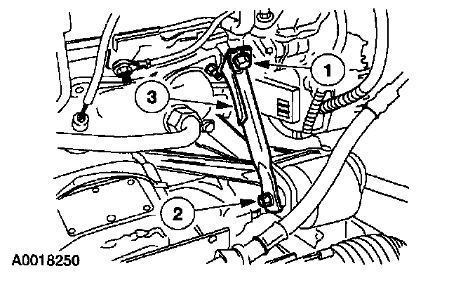 22. Install the rear engine lifting bracket in the same location where the top bolt was removed from the rear support brace.