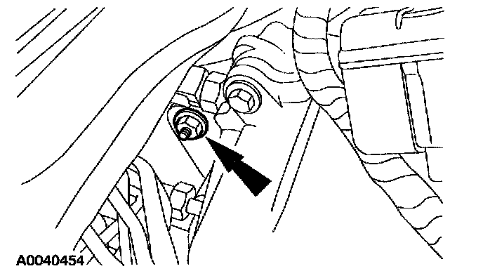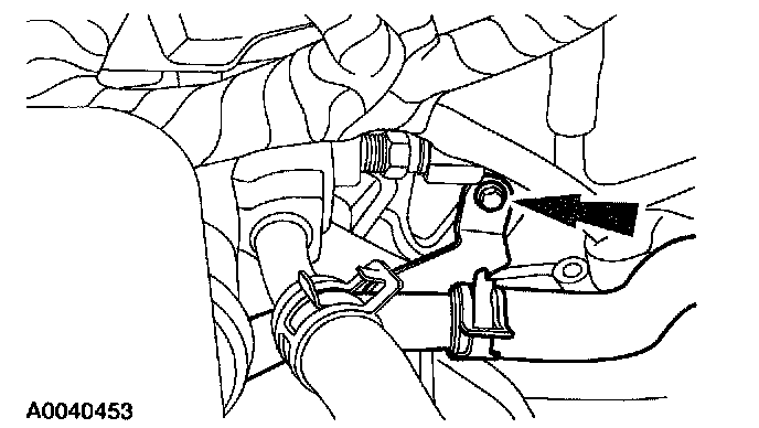 15. Remove the nut from the coolant pipe bracket.