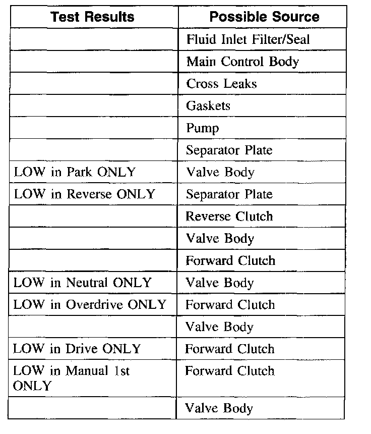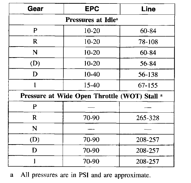 2. Start the engine and check the line pressures see the line pressure chart to determine if the line pressure is within specification.