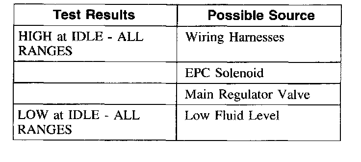 5. Start the engine and check the EPC pressure see the line pressure chart for specifications.