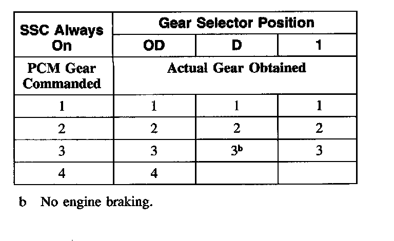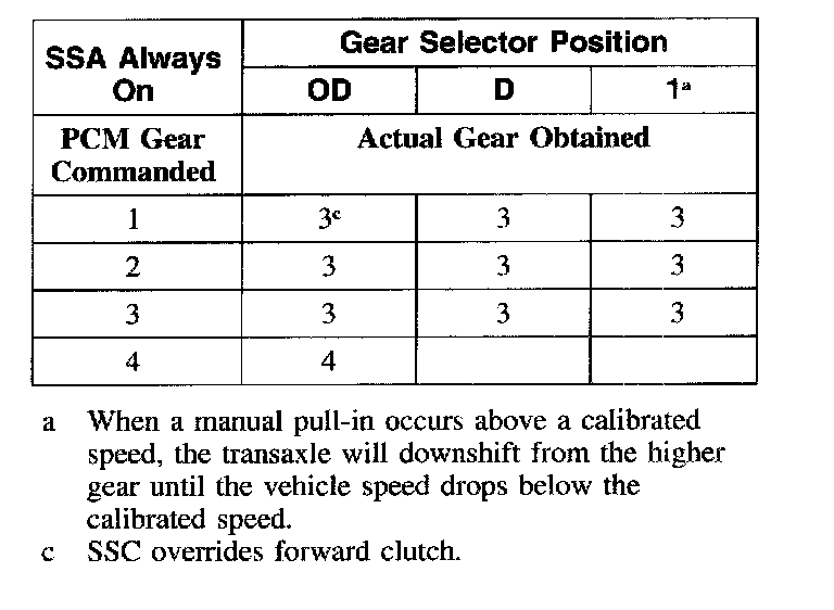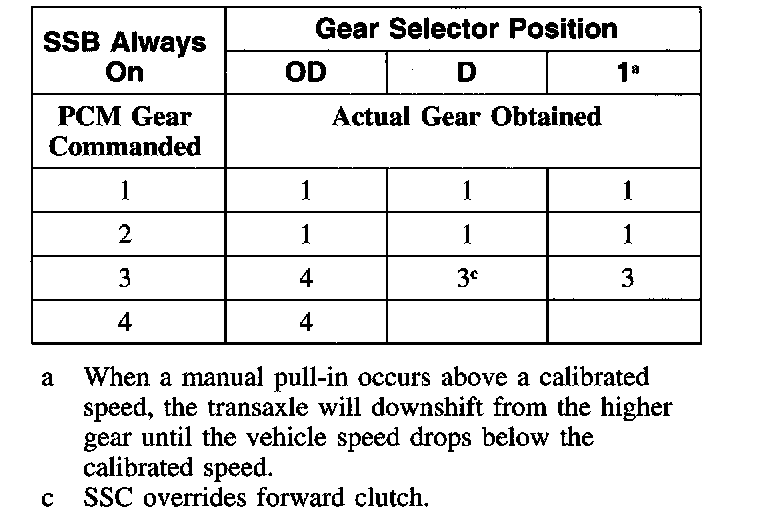 Shift Solenoid Failure Mode Chart "Always On"