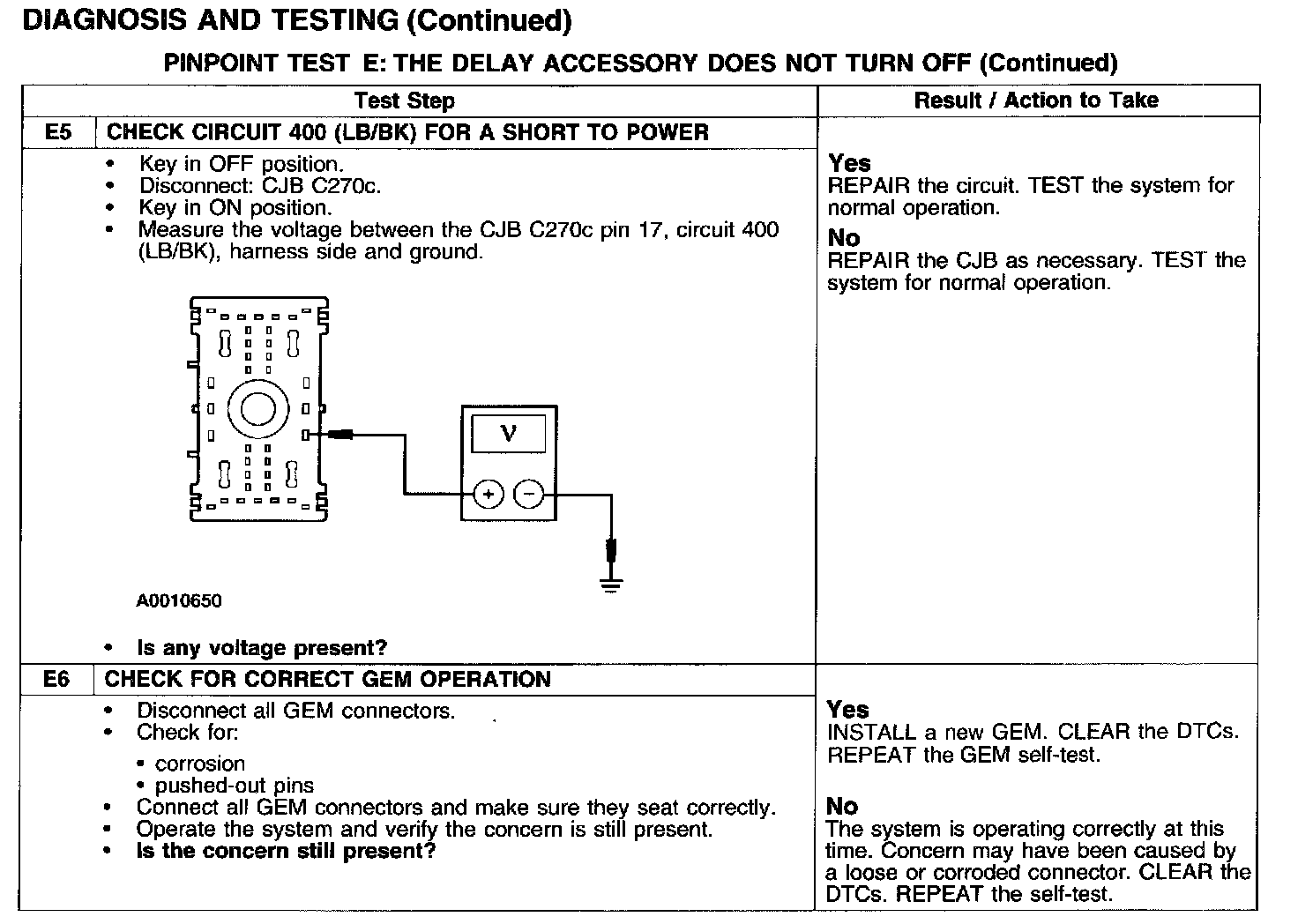 PINPOINT TEST E: THE DELAY ACCESSORY DOES NOT TURN OFF