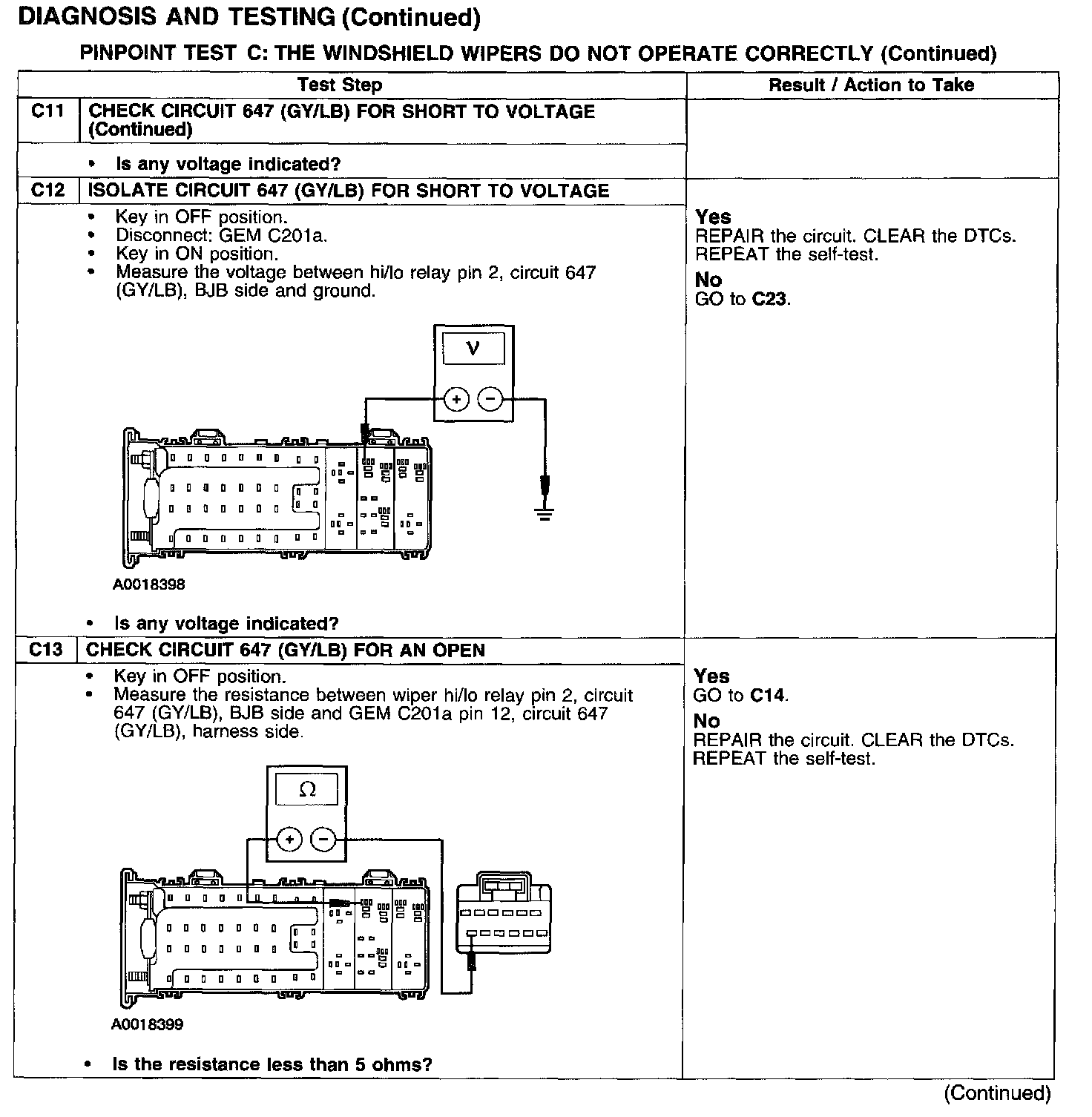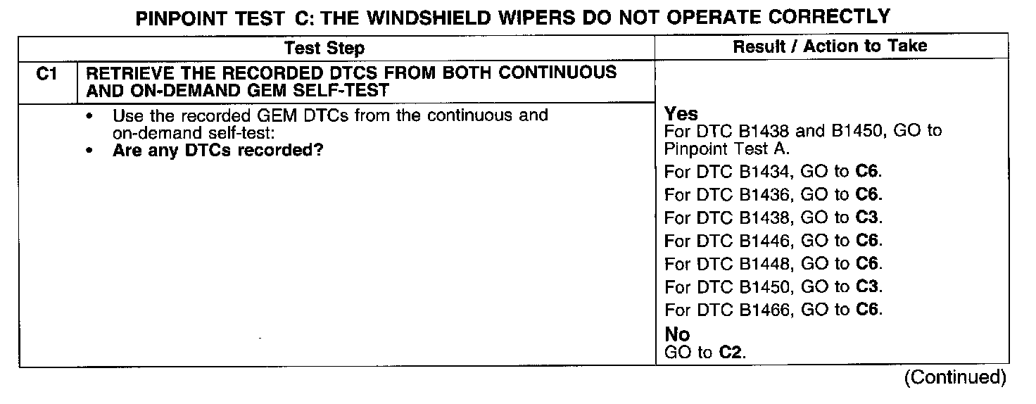 PINPOINT TEST C: THE WINDSHIELD WIPERS DO NOT OPERATE CORRECTLY