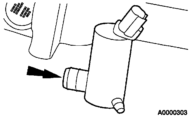 NOTE: The windshield washer reservoir will drain when the washer hose is disconnected.