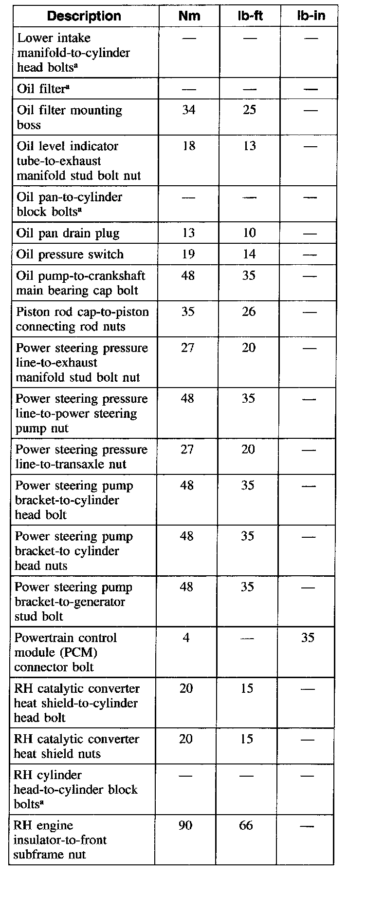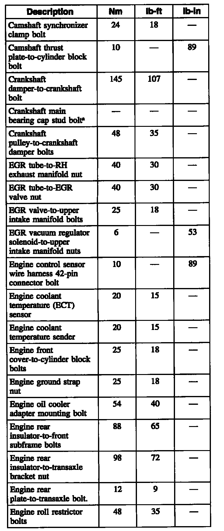 Torque Specifications