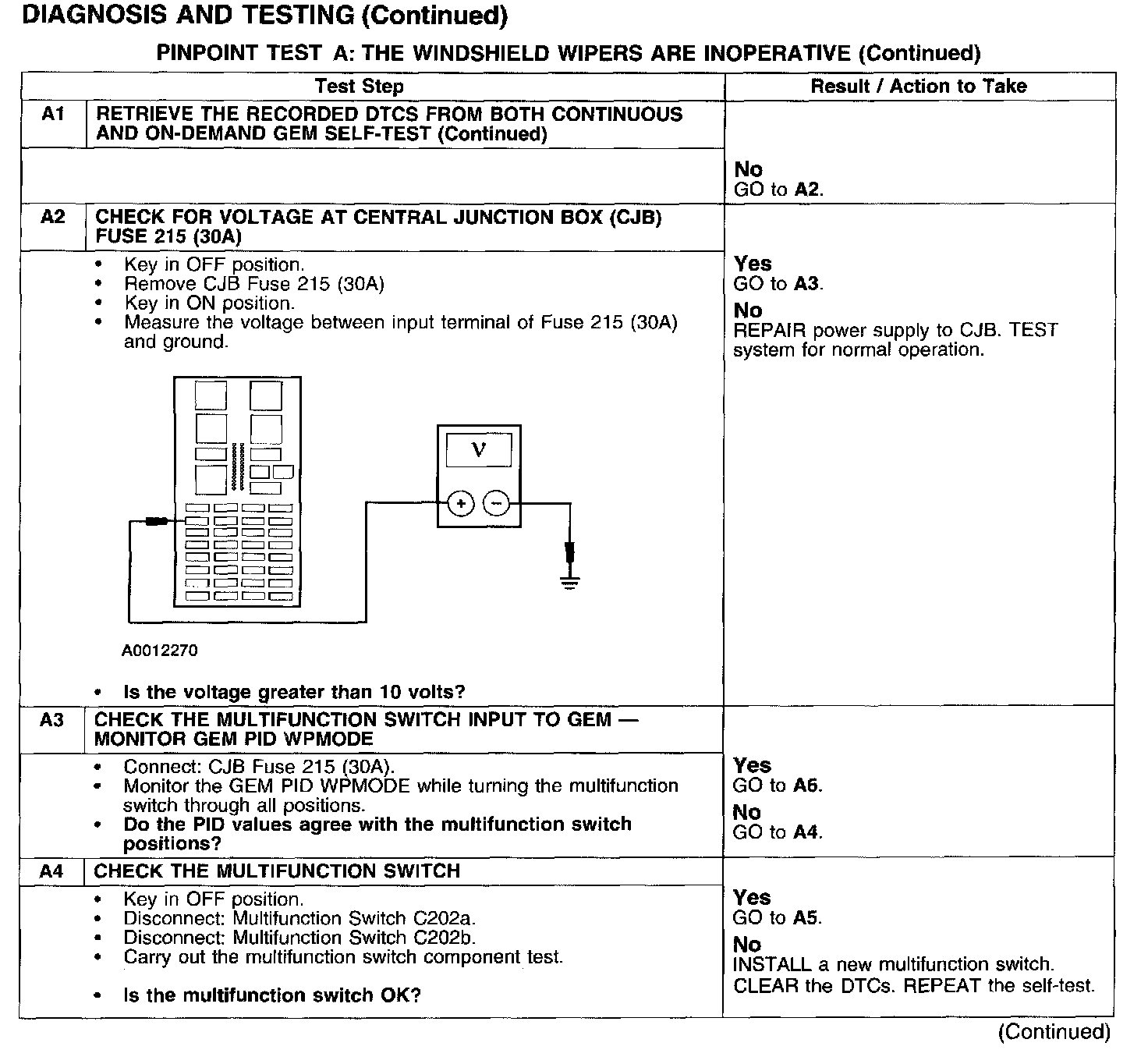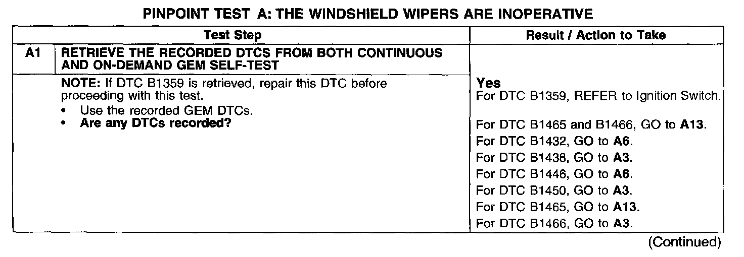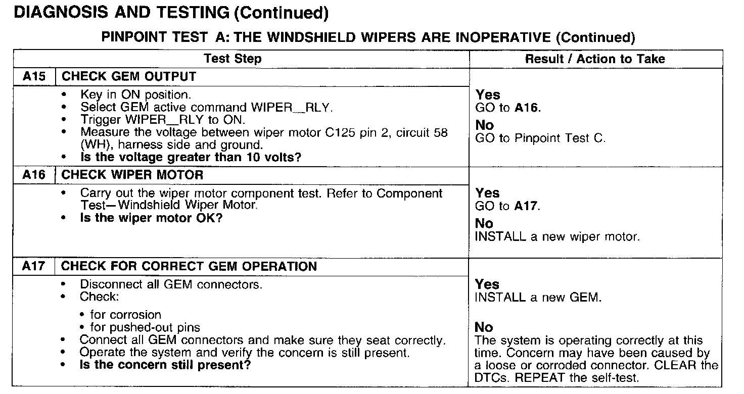 PINPOINT TEST A: THE WINDSHIELD WIPERS ARE INOPERATIVE