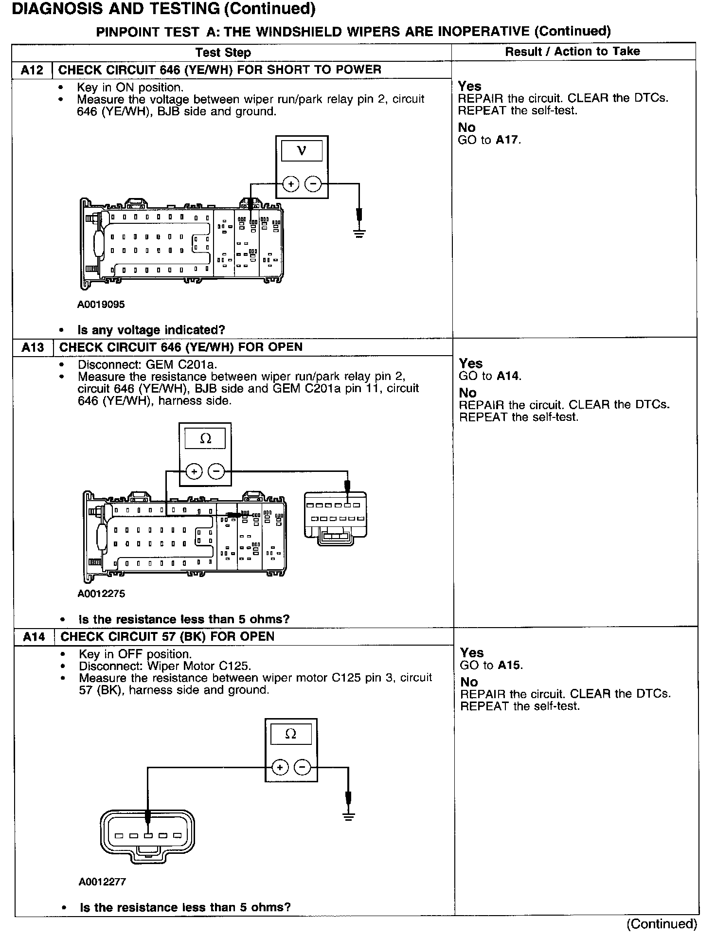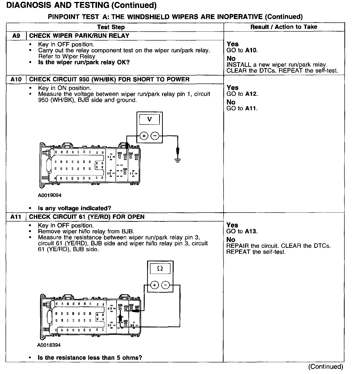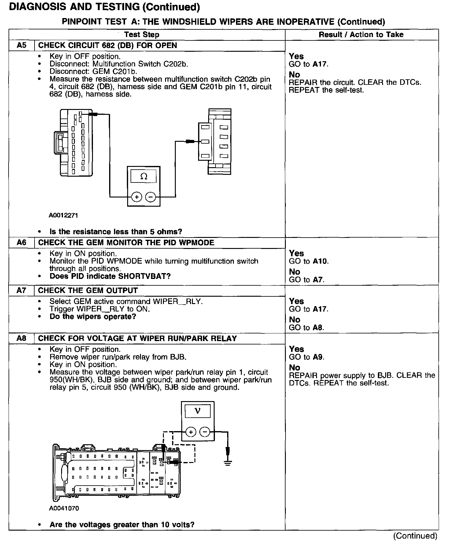 PINPOINT TEST A: THE WINDSHIELD WIPERS ARE INOPERATIVE