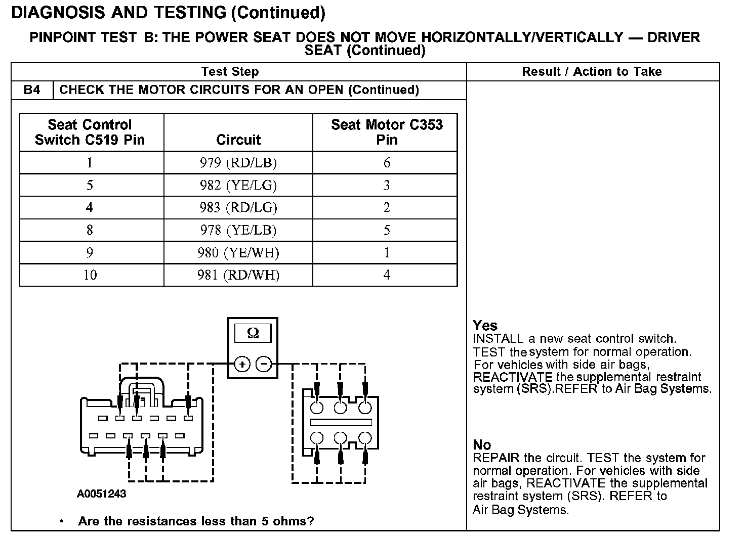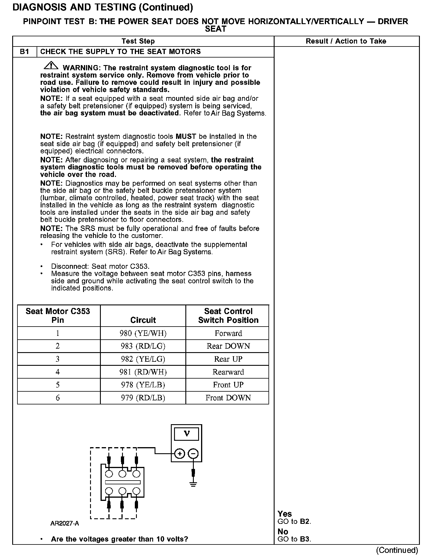 PINPOINT TEST B: THE POWER SEAT DOES NOT MOVE HORIZONTALLY/VERTICALLY - DRIVER SEAT