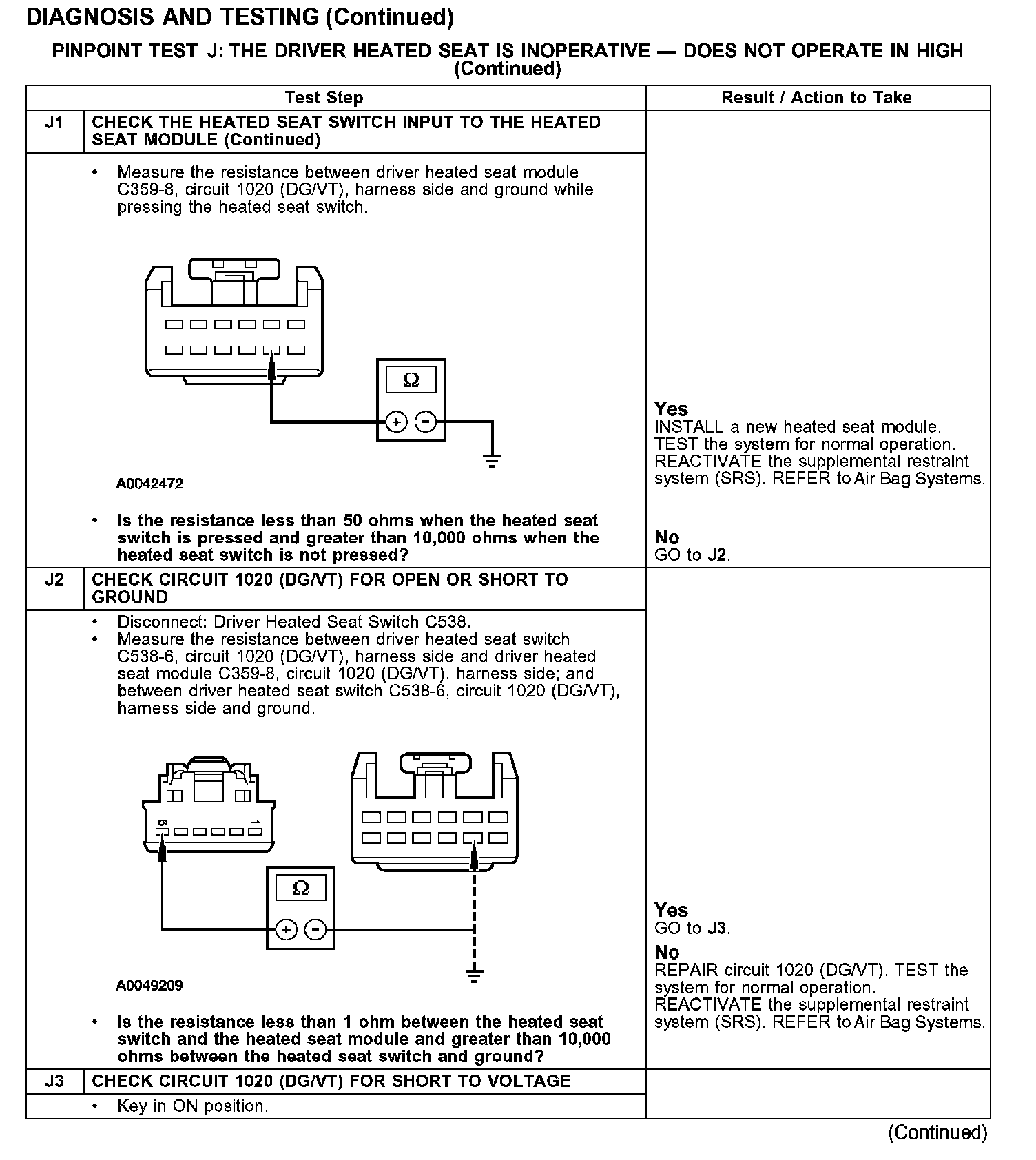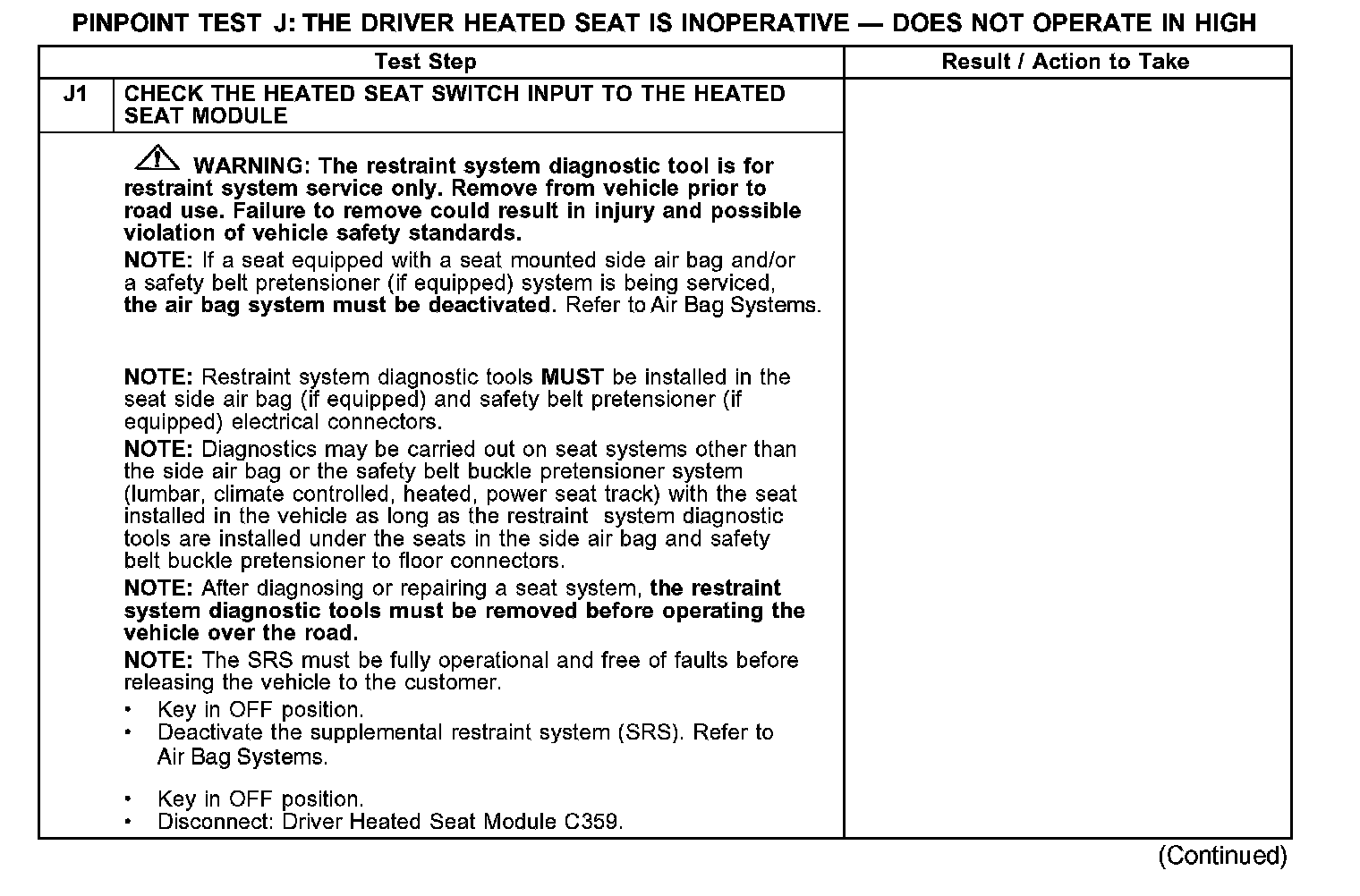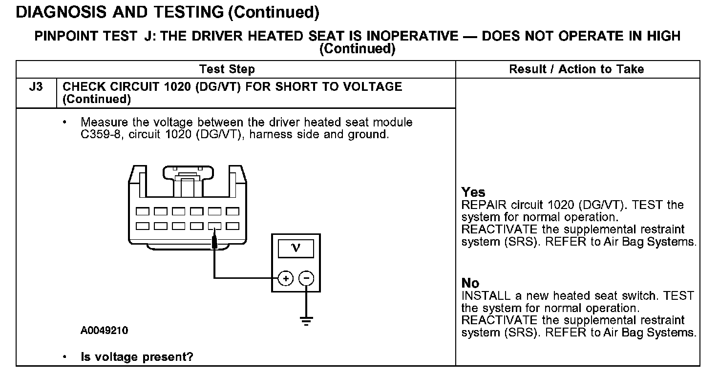 PINPOINT TEST J: THE DRIVER HEATED SEAT IS INOPERATIVE - DOES NOT OPERATE IN HIGH