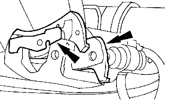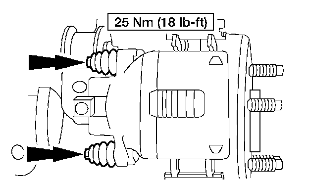 2. CAUTION: Do not allow the caliper to hang from the brake hose. Damage to the hose can result.
