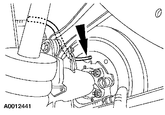 NOTE: When removing the brake disc in this procedure, it is not necessary to disconnect the hydraulic lines.
