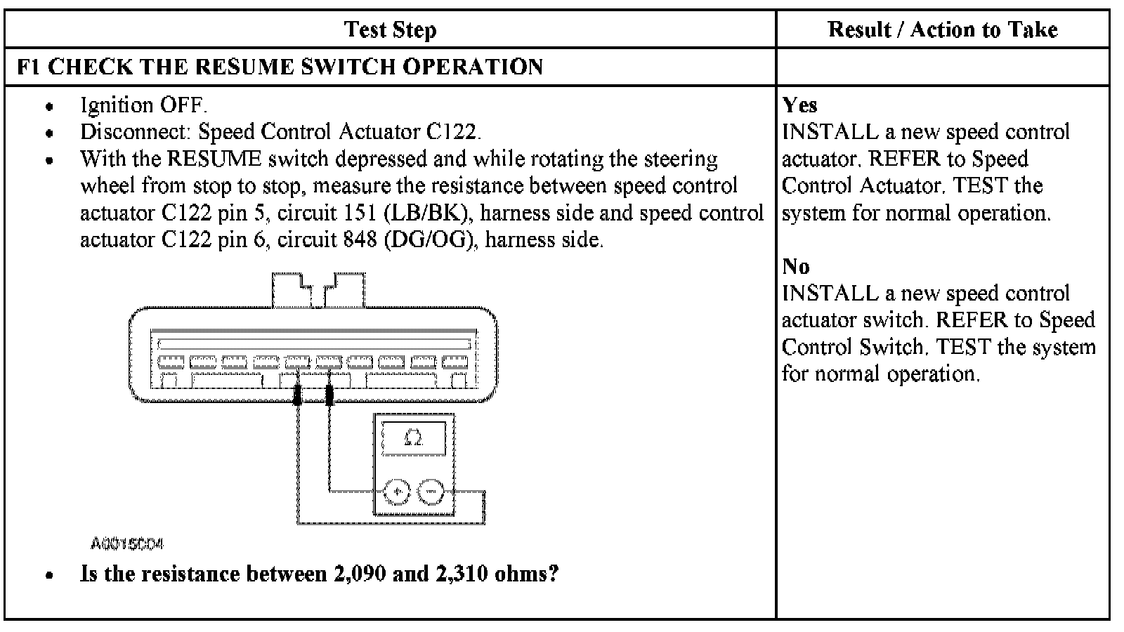 PINPOINT TEST F: THE RESUME SWITCH IS INOPERATIVE