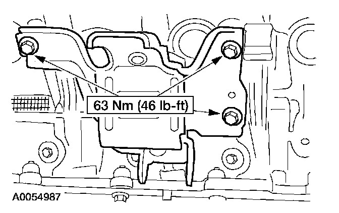 55. Install the coolant outlet adapter and loosely install the bolts.