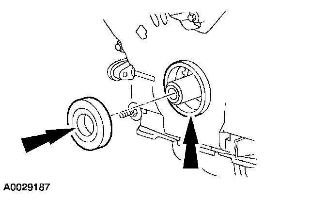 41. Position the coolant pump pulley on the water pump and install the bolts.