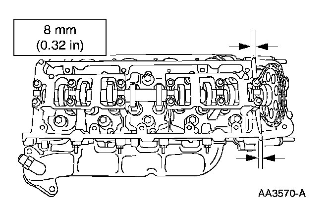 Apply sealant in two places where the engine front cover meets the cylinder head.