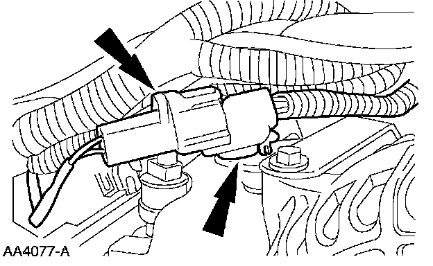 13. Disconnect the fuel charging wiring electrical connector from the A/C pressure transducer.