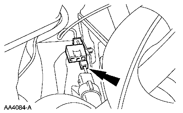 12. Disconnect the fuel charging wiring electrical connectors at the inner fender splash shield.