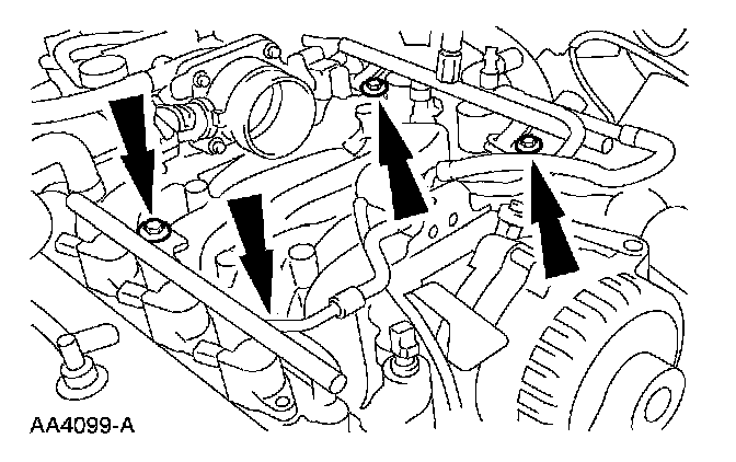 34. Remove the fuel injection supply manifold and the fuel injectors as an assembly.