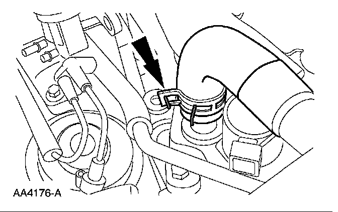 36. Disconnect the upper radiator hose from the water outlet adapter.