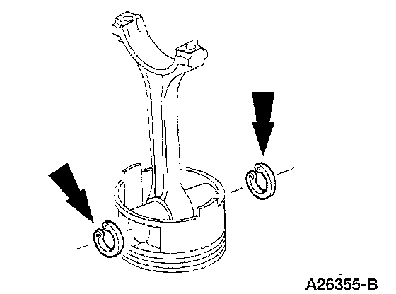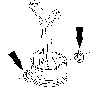 4. Install the piston pin retaining clips in the piston.