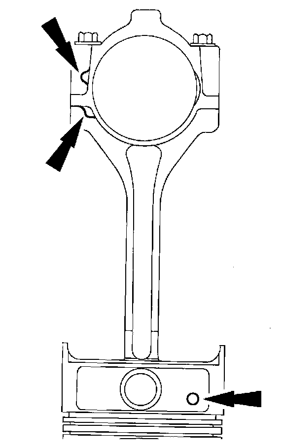 1. NOTE: Connecting rod must be installed into piston with identification markings toward the front.