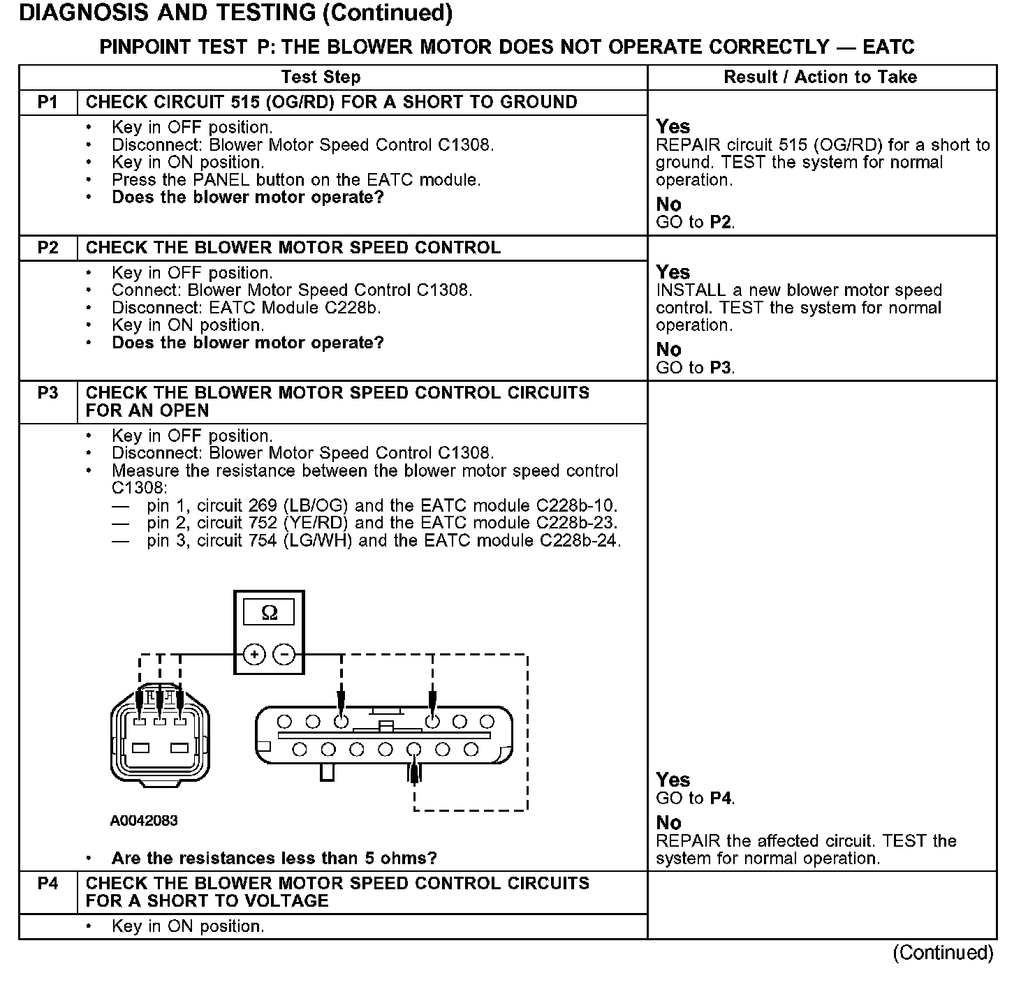 PINPOINT TEST P: THE BLOWER MOTOR DOES NOT OPERATE CORRECTLY - EATC