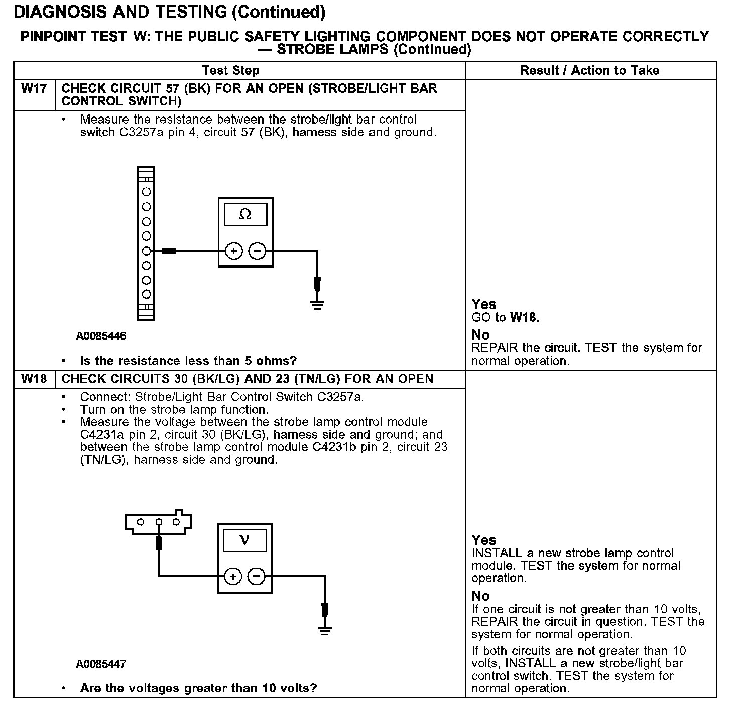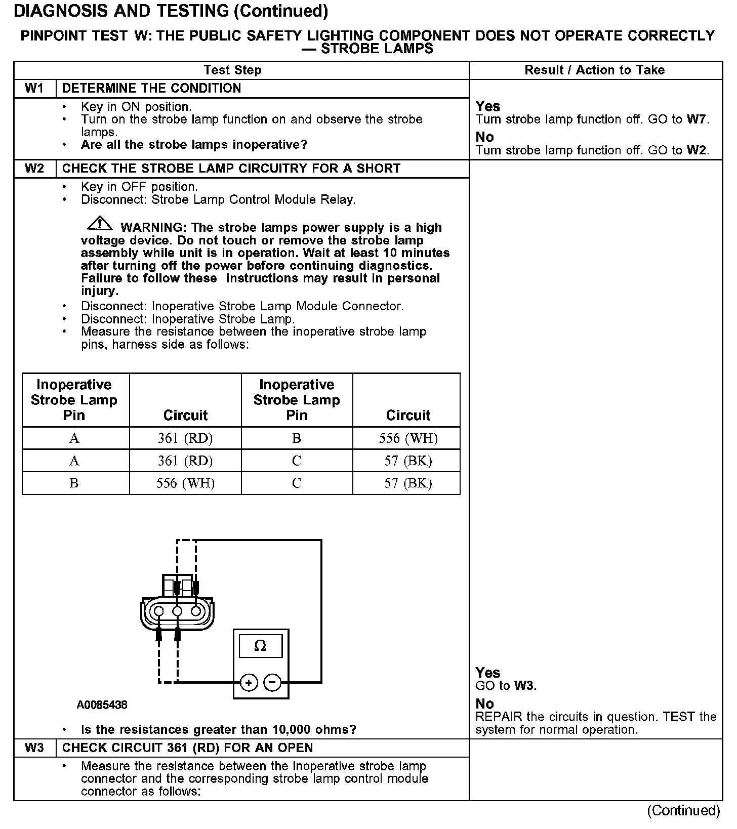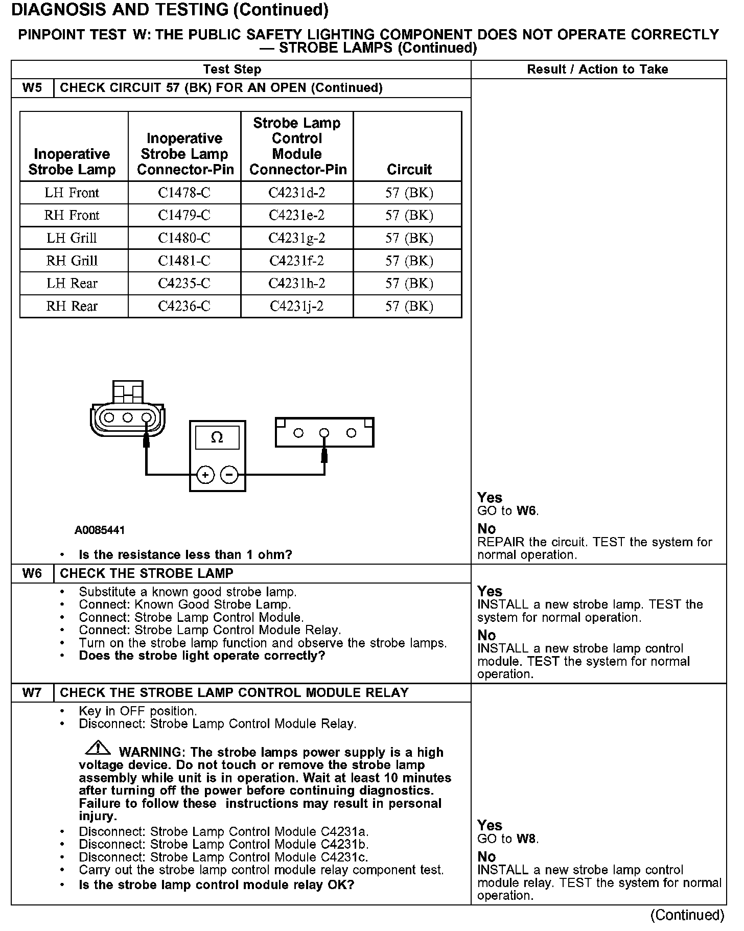 PINPOINT TEST W: THE PUBLIC SAFETY LIGHTING COMPONENT DOES NOT OPERATE CORRECTLY - STROBE LAMPS