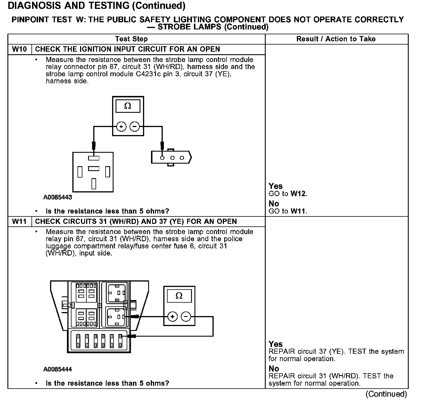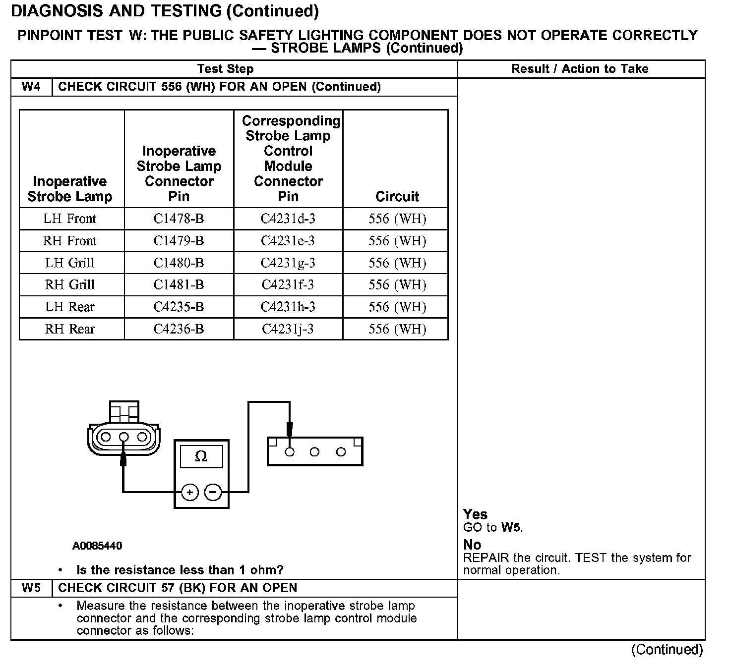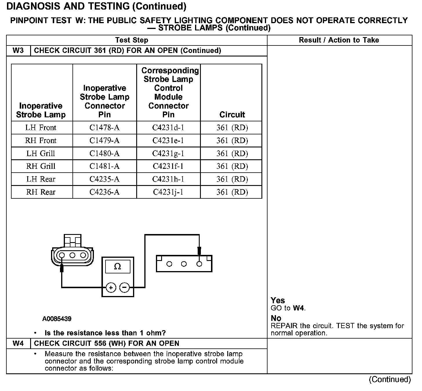 PINPOINT TEST W: THE PUBLIC SAFETY LIGHTING COMPONENT DOES NOT OPERATE CORRECTLY - STROBE LAMPS