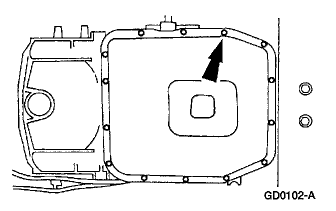 2. NOTE: The transmission fluid pan gasket is reusable, clean and inspect for damage, if not damaged, the gasket should be reused.