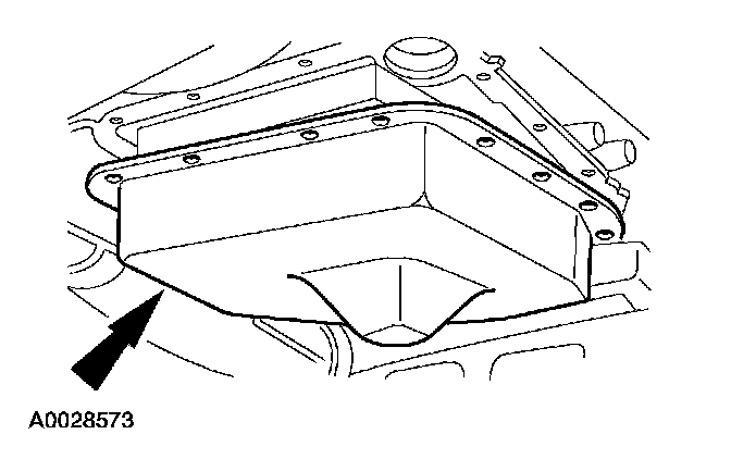 3. After the fluid has drained, remove the transmission fluid pan.