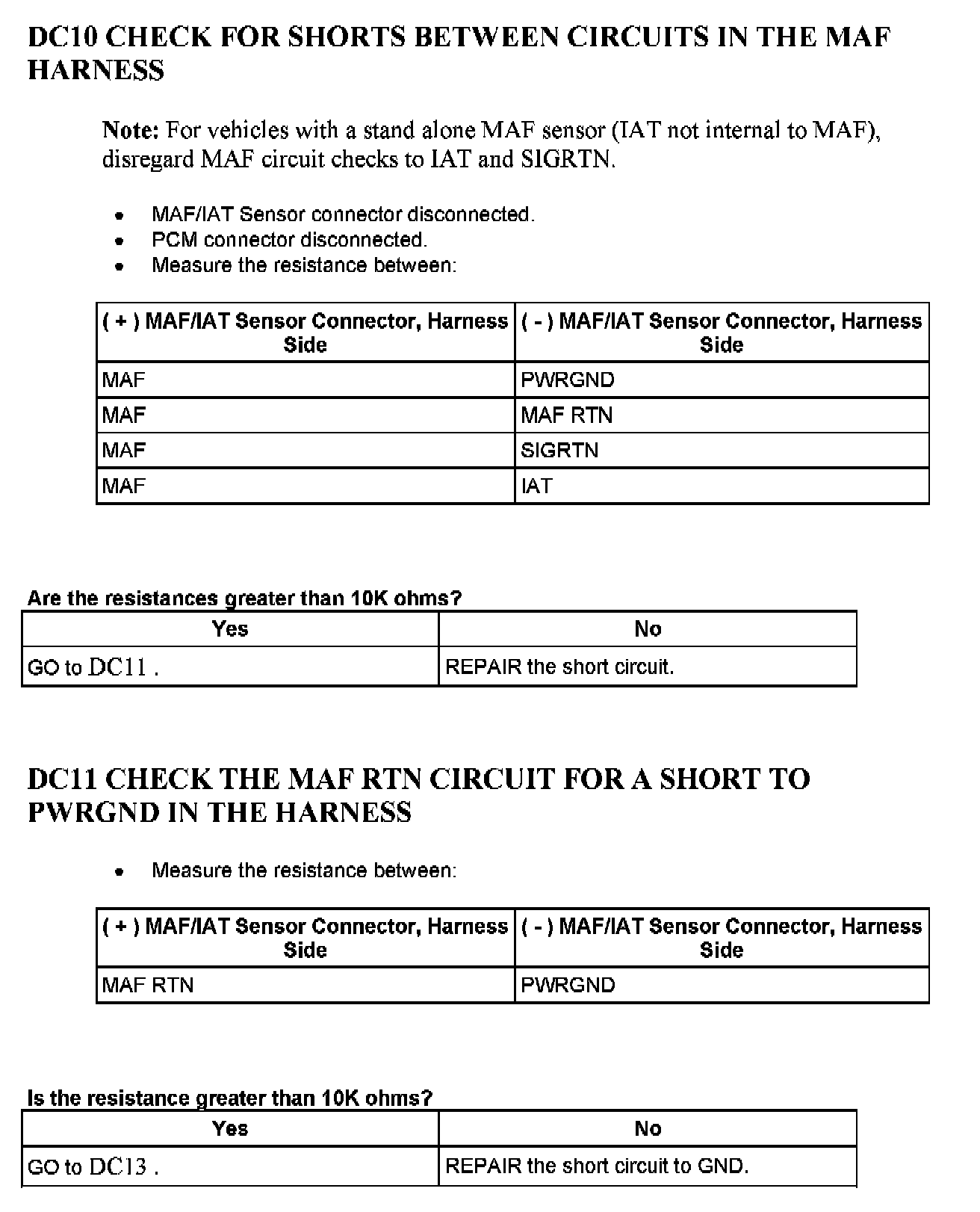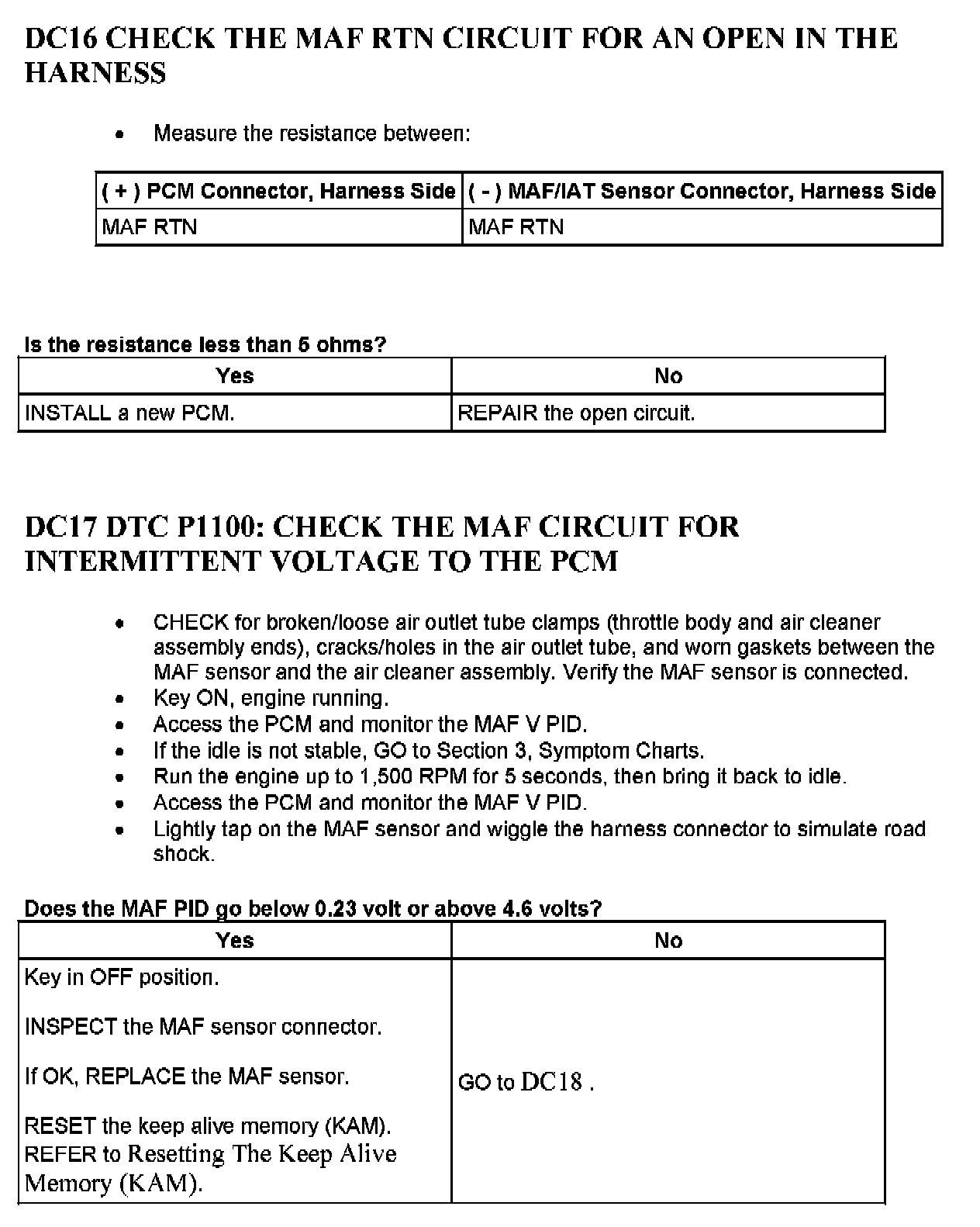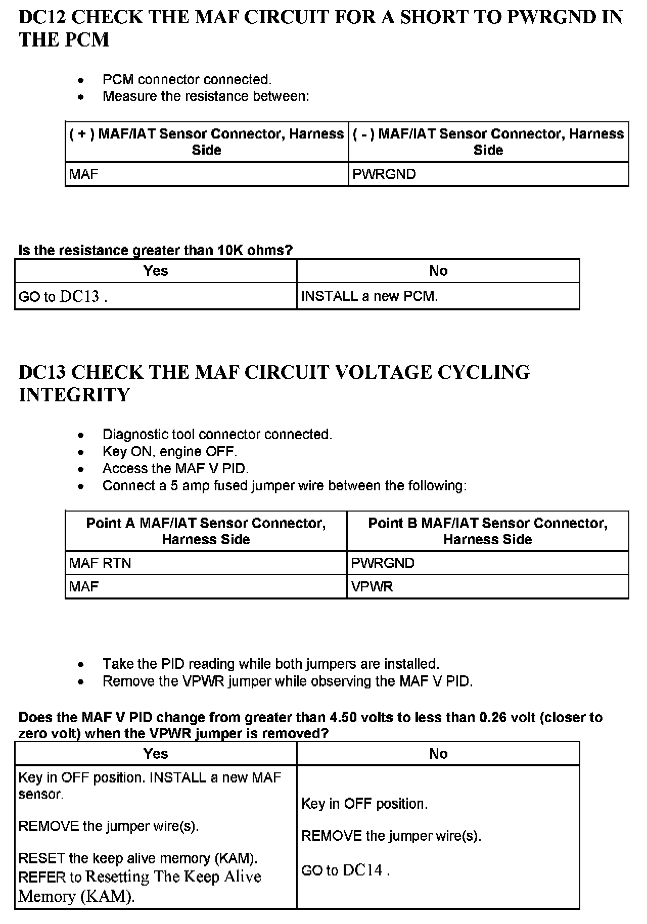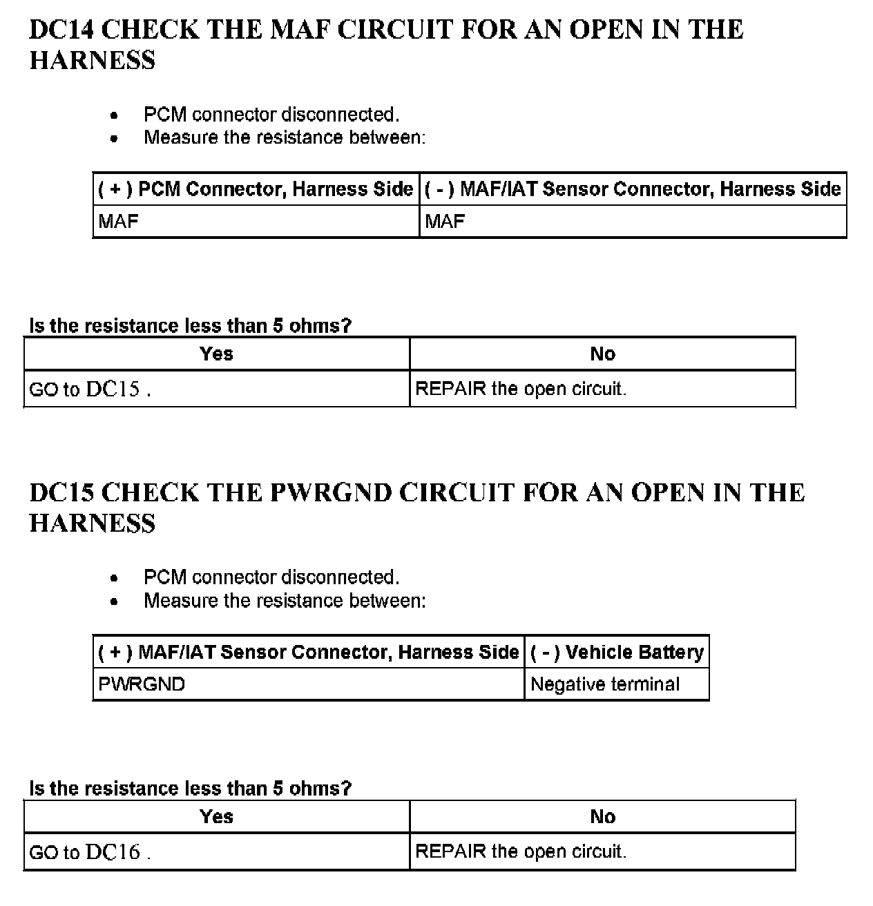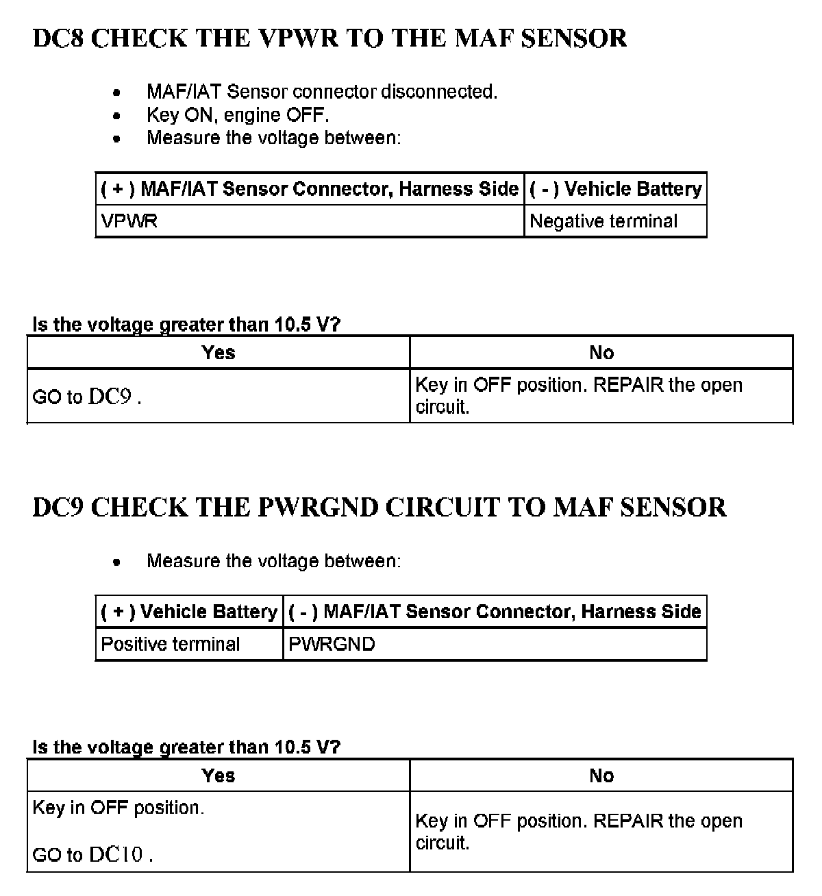 PINPOINT TEST DC: MASS AIR FLOW SENSOR