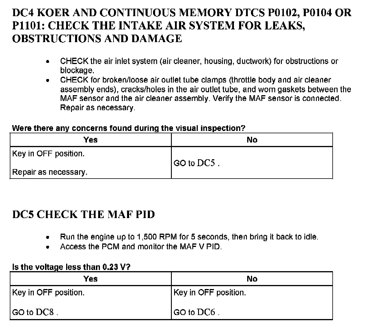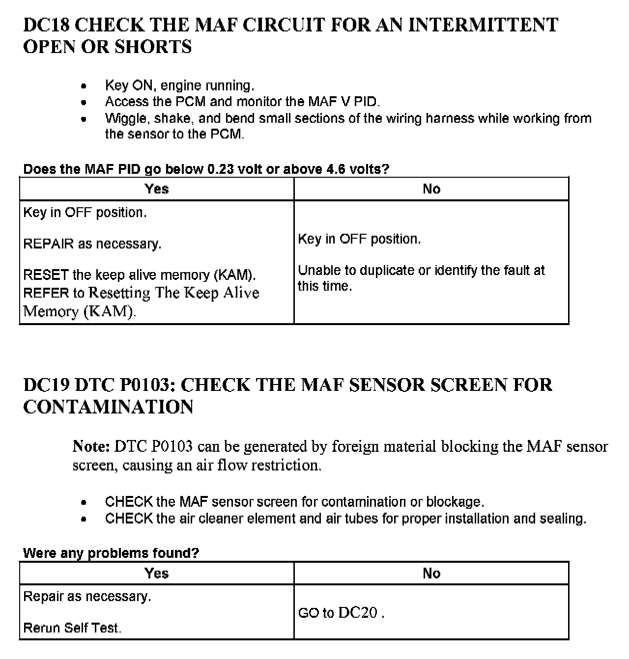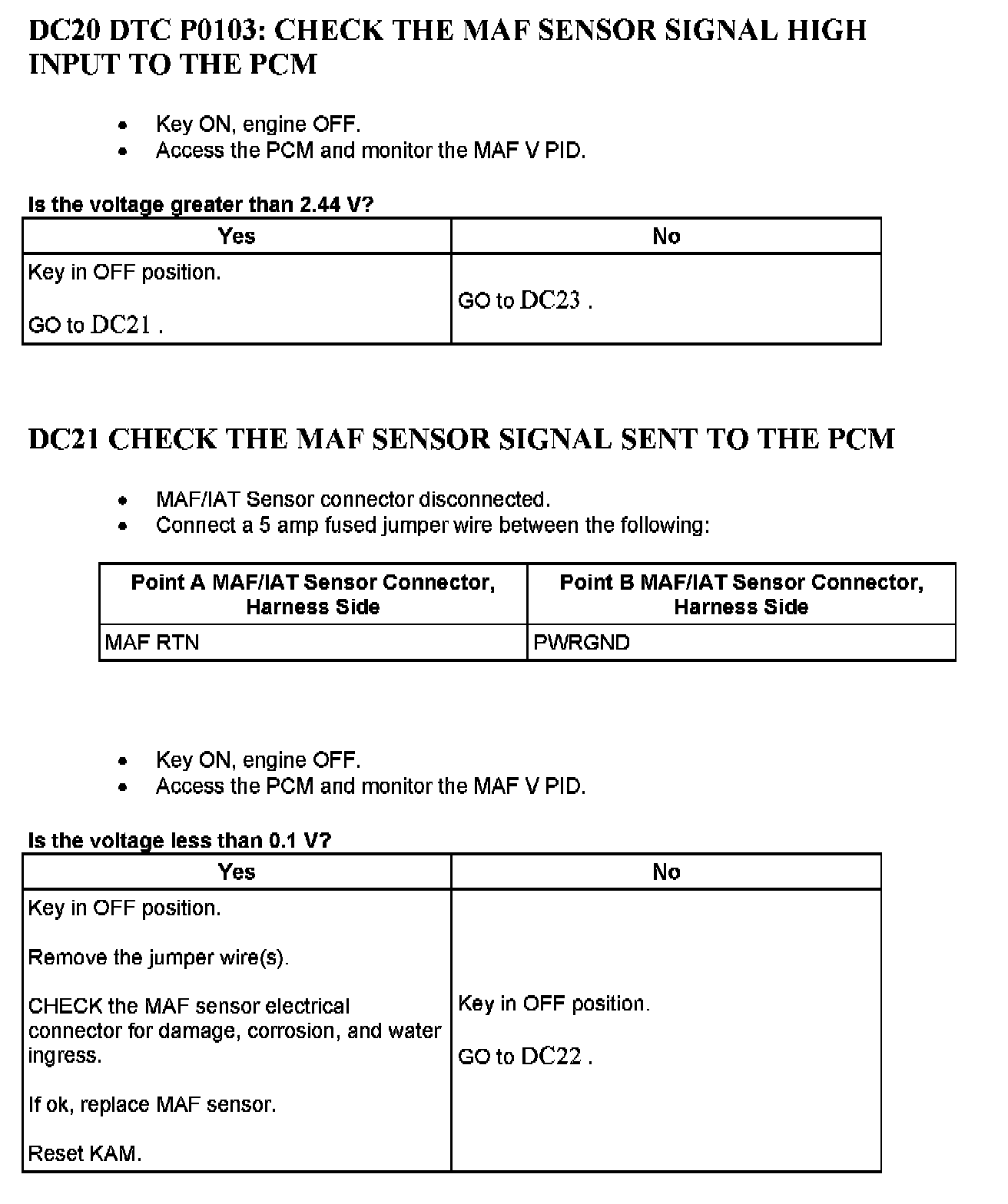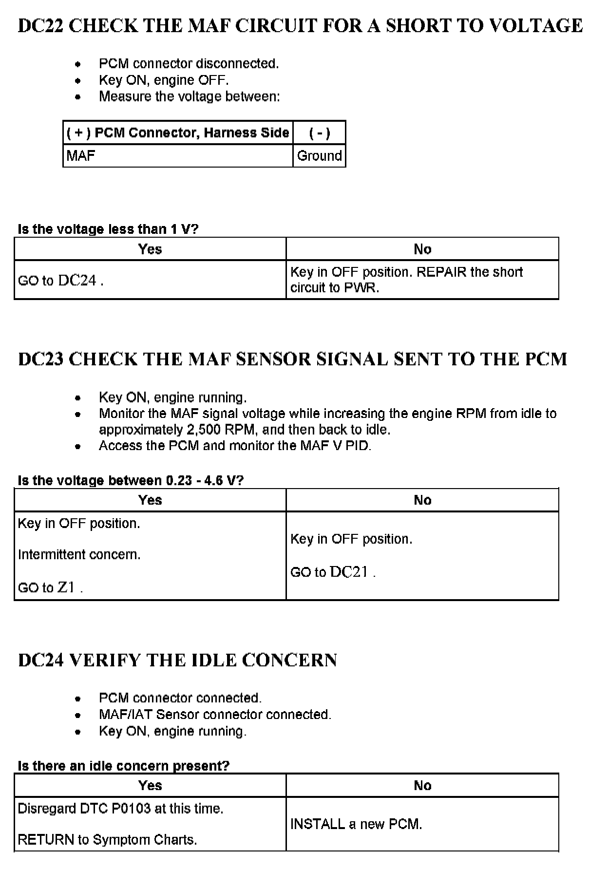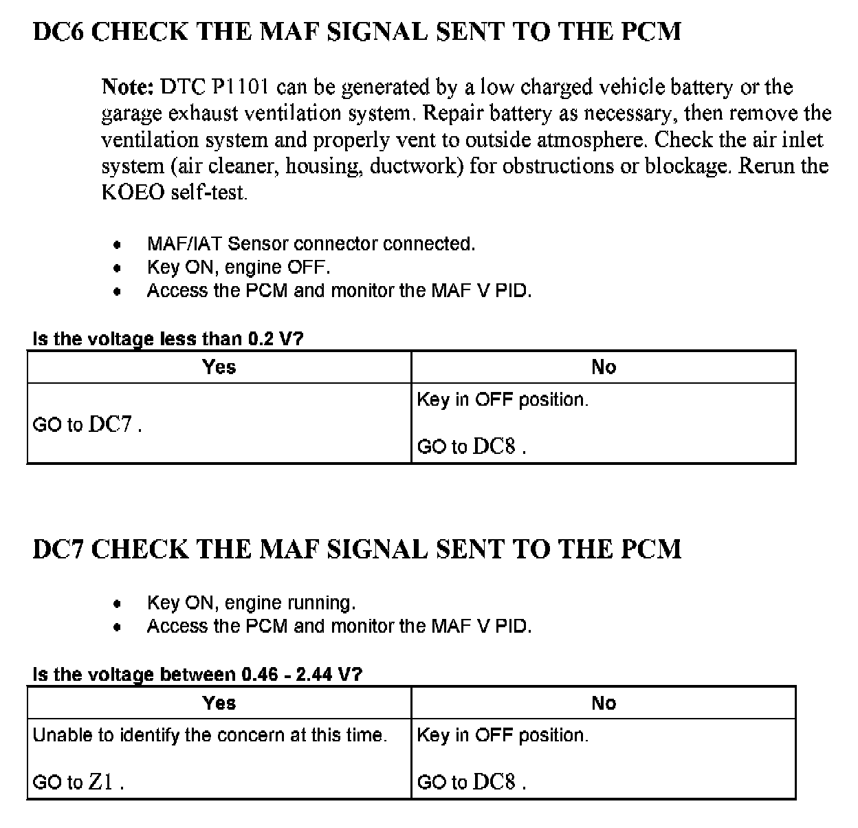 PINPOINT TEST DC: MASS AIR FLOW SENSOR