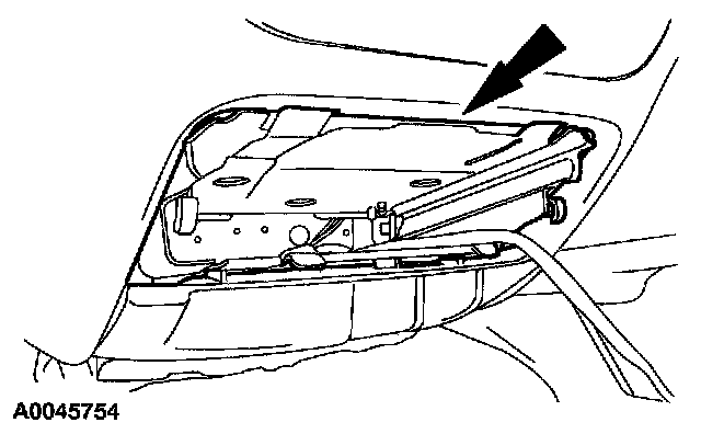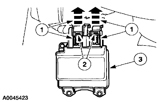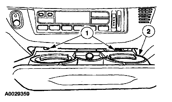 2 Slide the ash tray bracket forward, releasing the retainers and position the ash tray bracket out of the way to access the restraint control module (RCM).