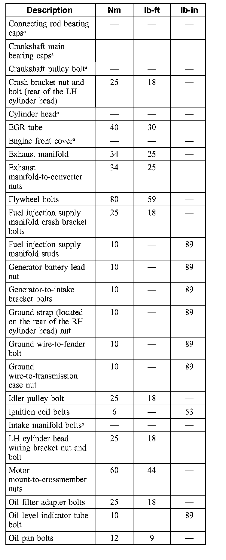 Torque Specifications