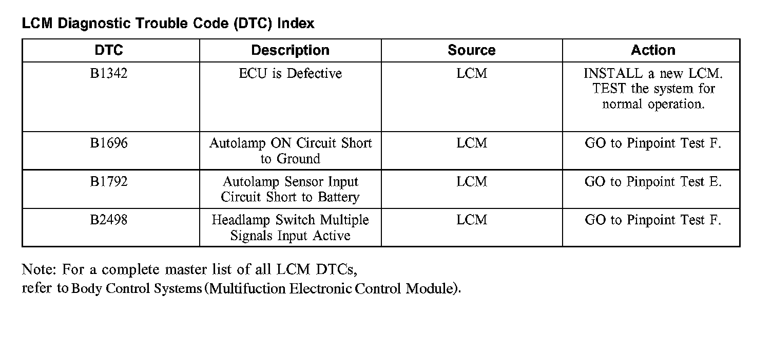 DTC Index B1342 - B2498: