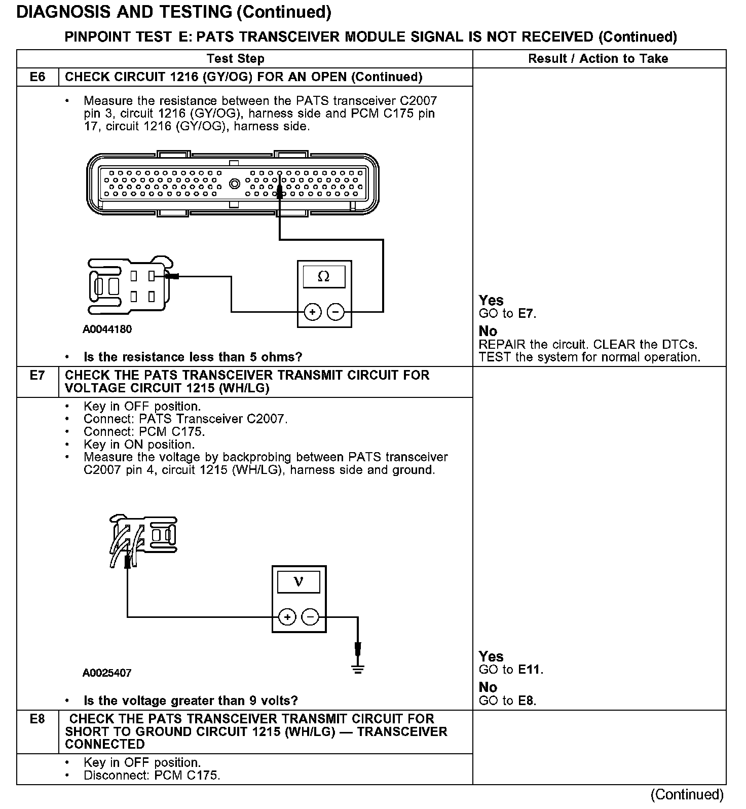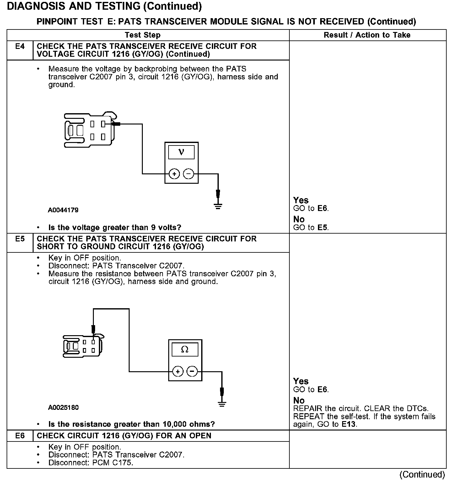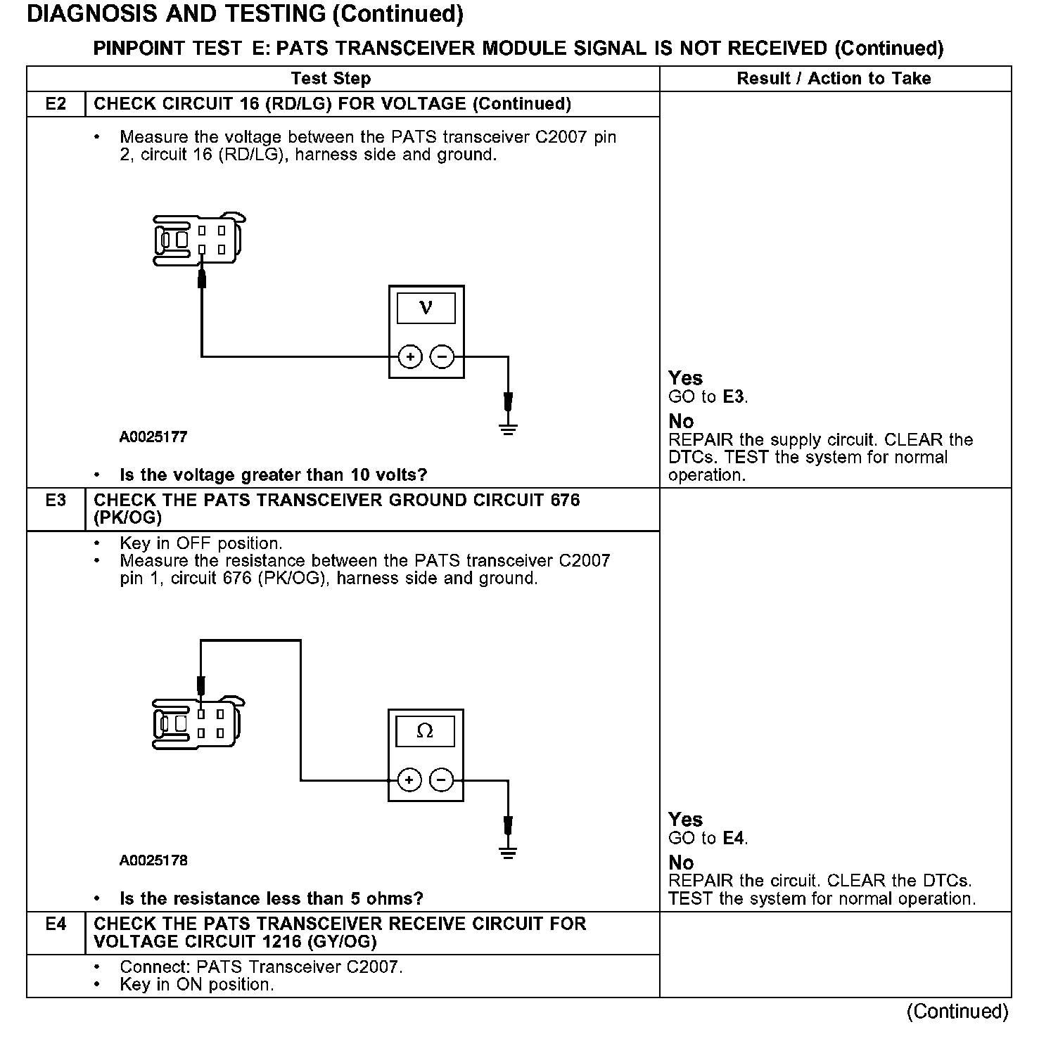 PINPOINT TEST E: PATS TRANSCEIVER MODULE SIGNAL IS NOT RECEIVED