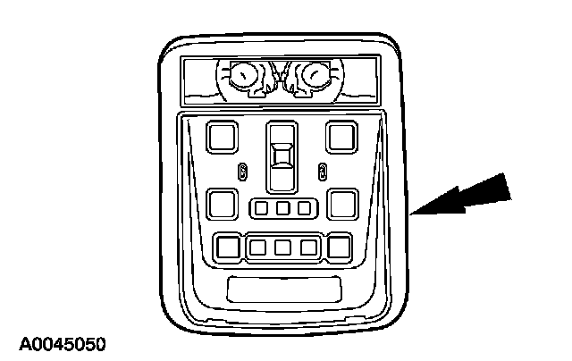2. Disengage the four retaining clips by first pulling down on the front of the overhead console and then the rear of the overhead console.