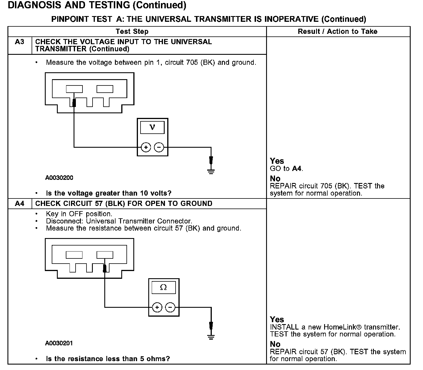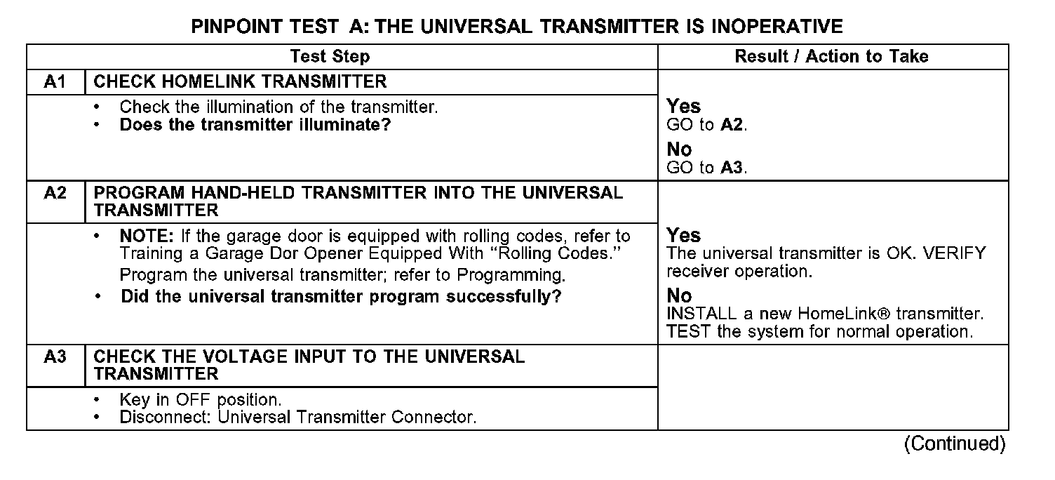 PINPOINT TEST A: THE UNIVERSAL TRANSMITTER IS INOPERATIVE