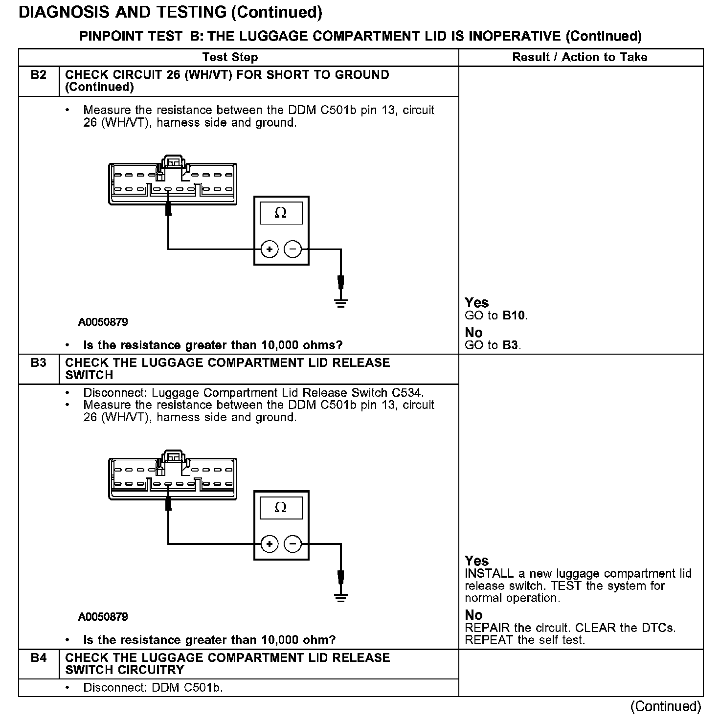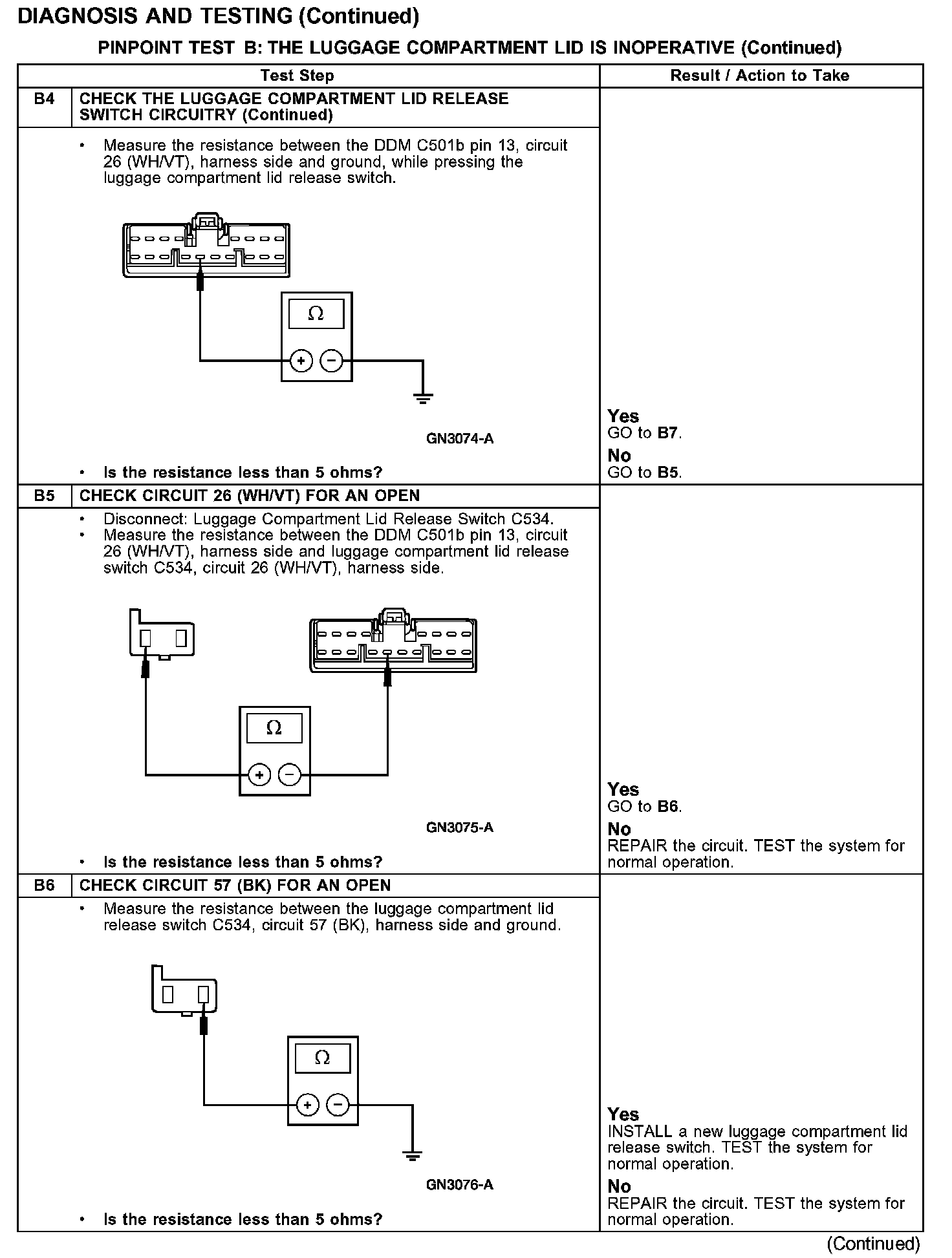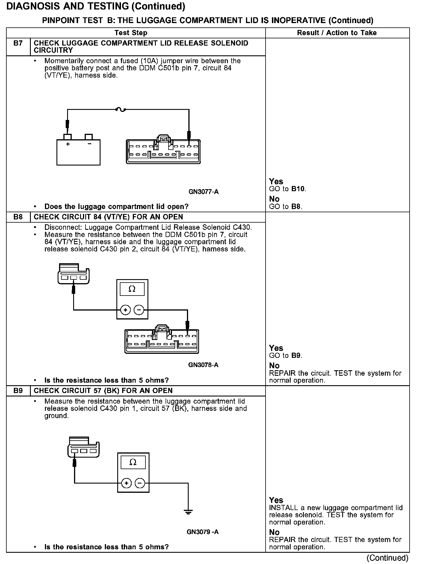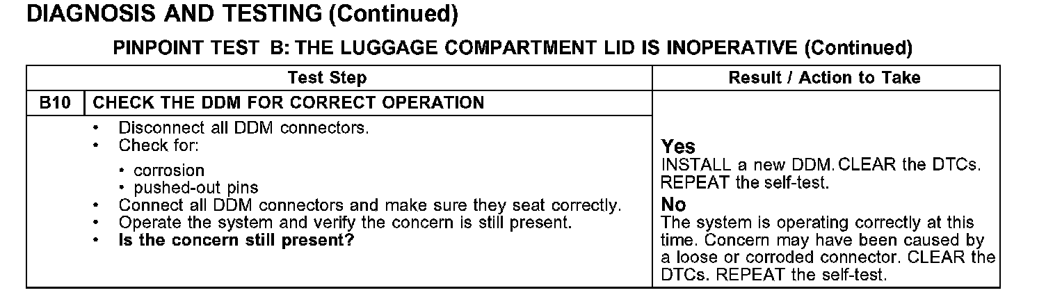 PINPOINT TEST B: THE LUGGAGE COMPARTMENT LID IS INOPERATIVE