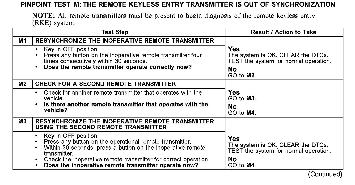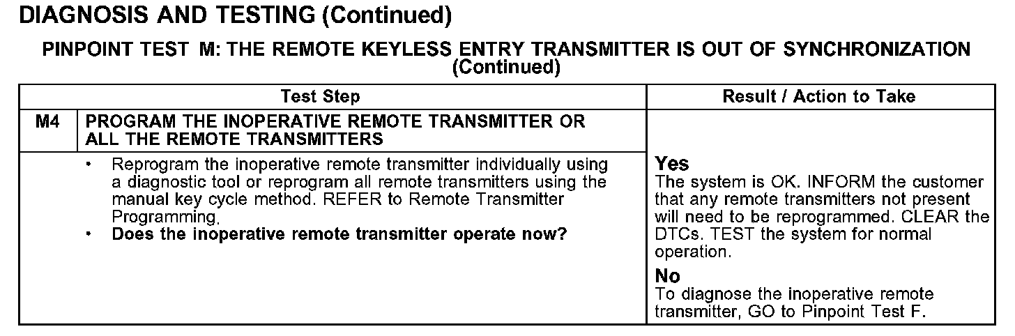 PINPOINT TEST M: THE REMOTE KEYLESS ENTRY TRANSMITTER IS OUT OF SYNCHRONIZATION