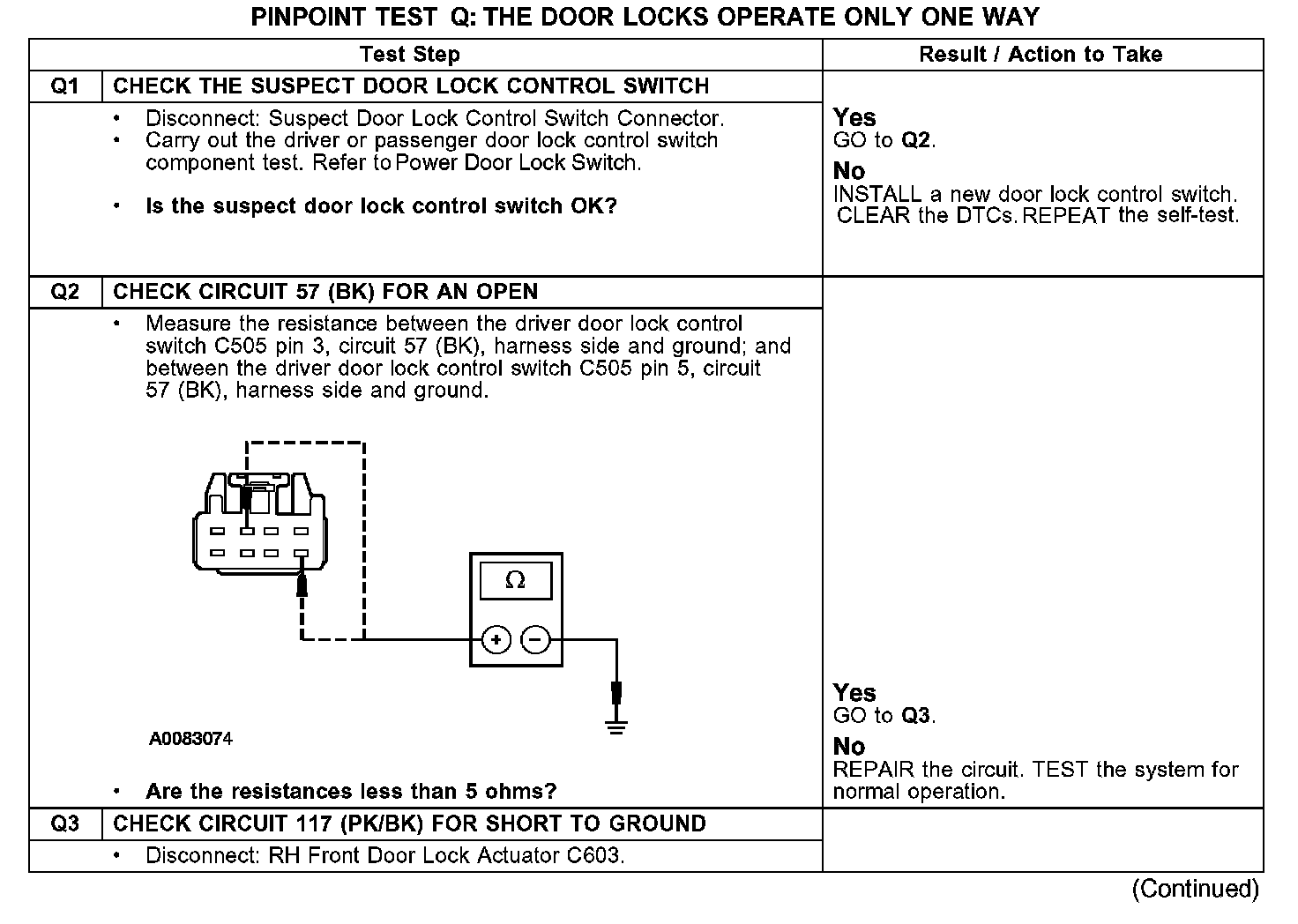 PINPOINT TEST Q: THE DOOR LOCKS OPERATE ONLY ONE WAY