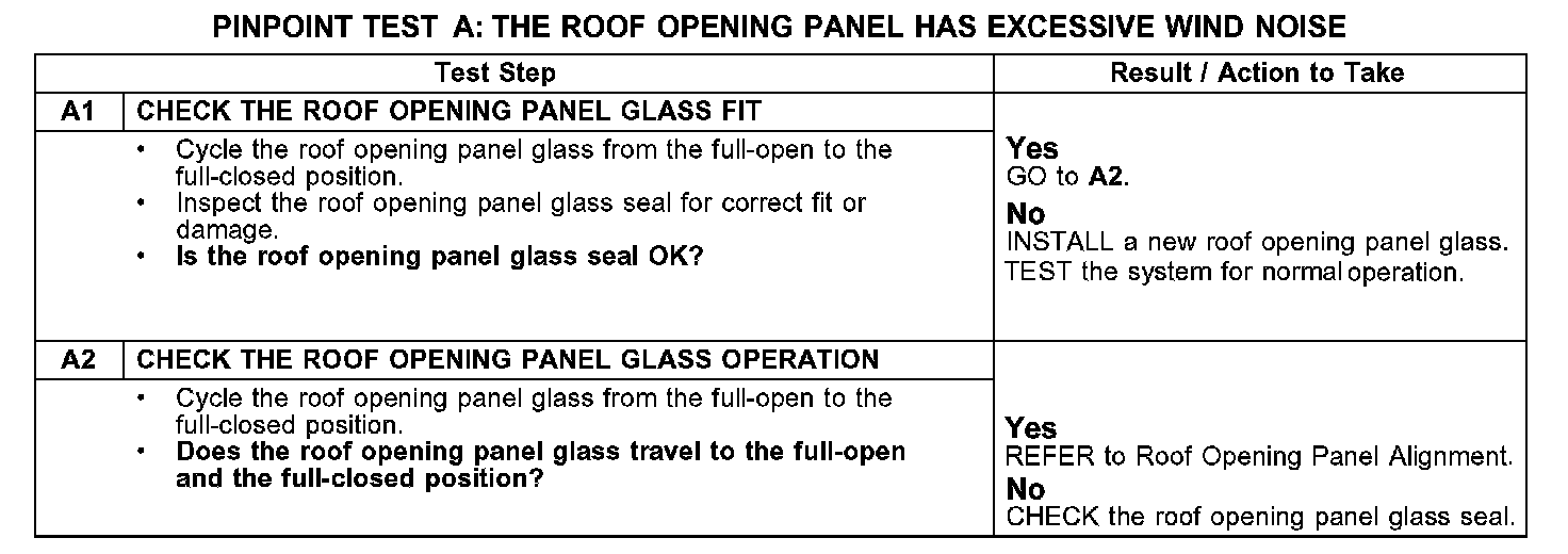 PINPOINT TEST A: THE ROOF OPENING PANEL HAS EXCESSIVE WIND NOISE
