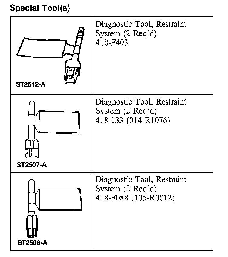 2. NOTE: Some component connectors may not exist due to vehicle options. For vehicles equipped with seat side air bags, do not remove the restraint system diagnostic tool or connect the seat side air bag electrical connector at this time.