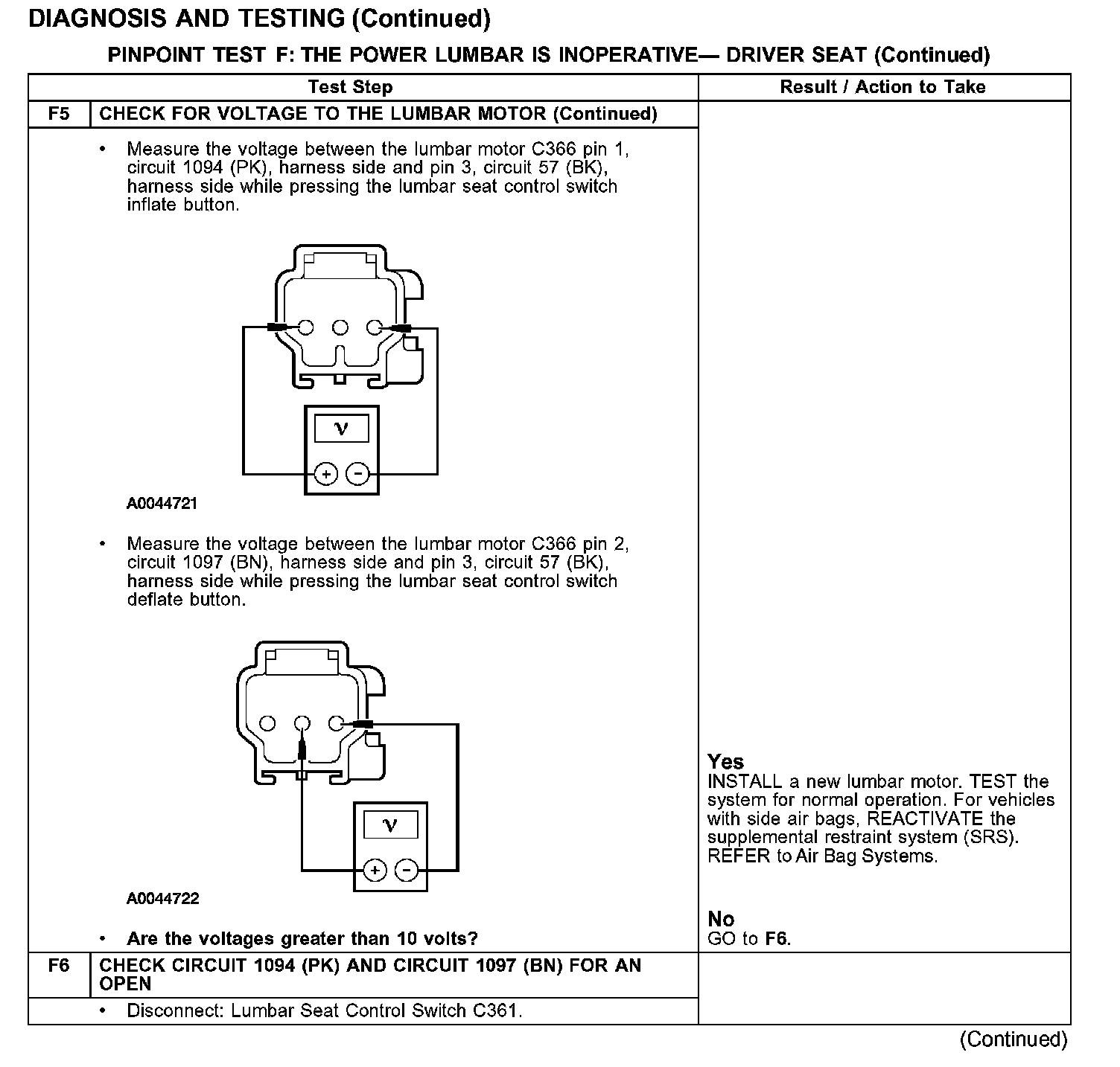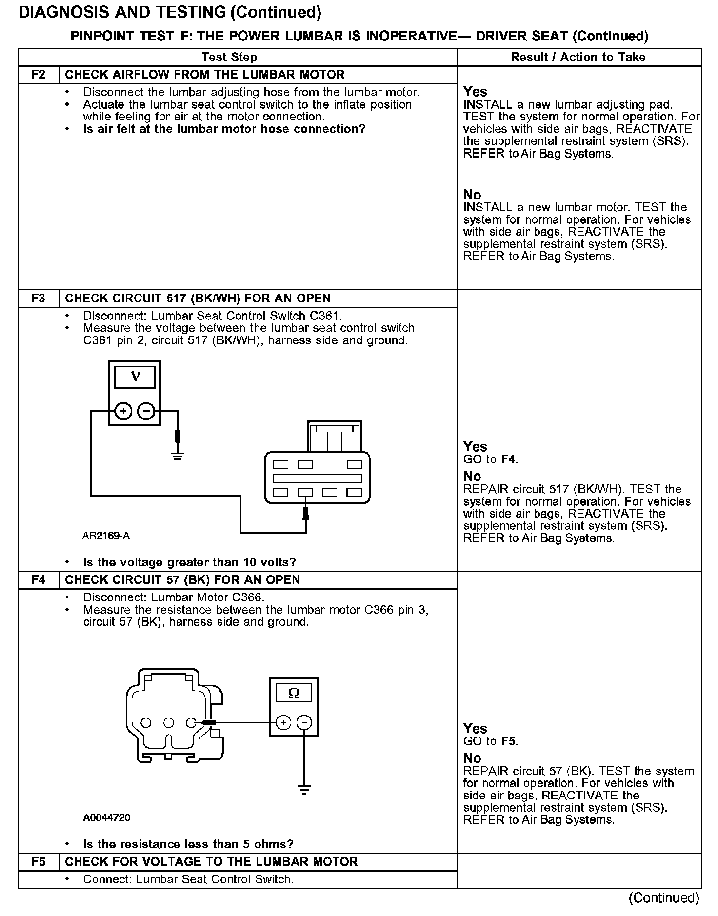 PINPOINT TEST F: THE POWER LUMBAR IS INOPERATIVE - DRIVER SEAT